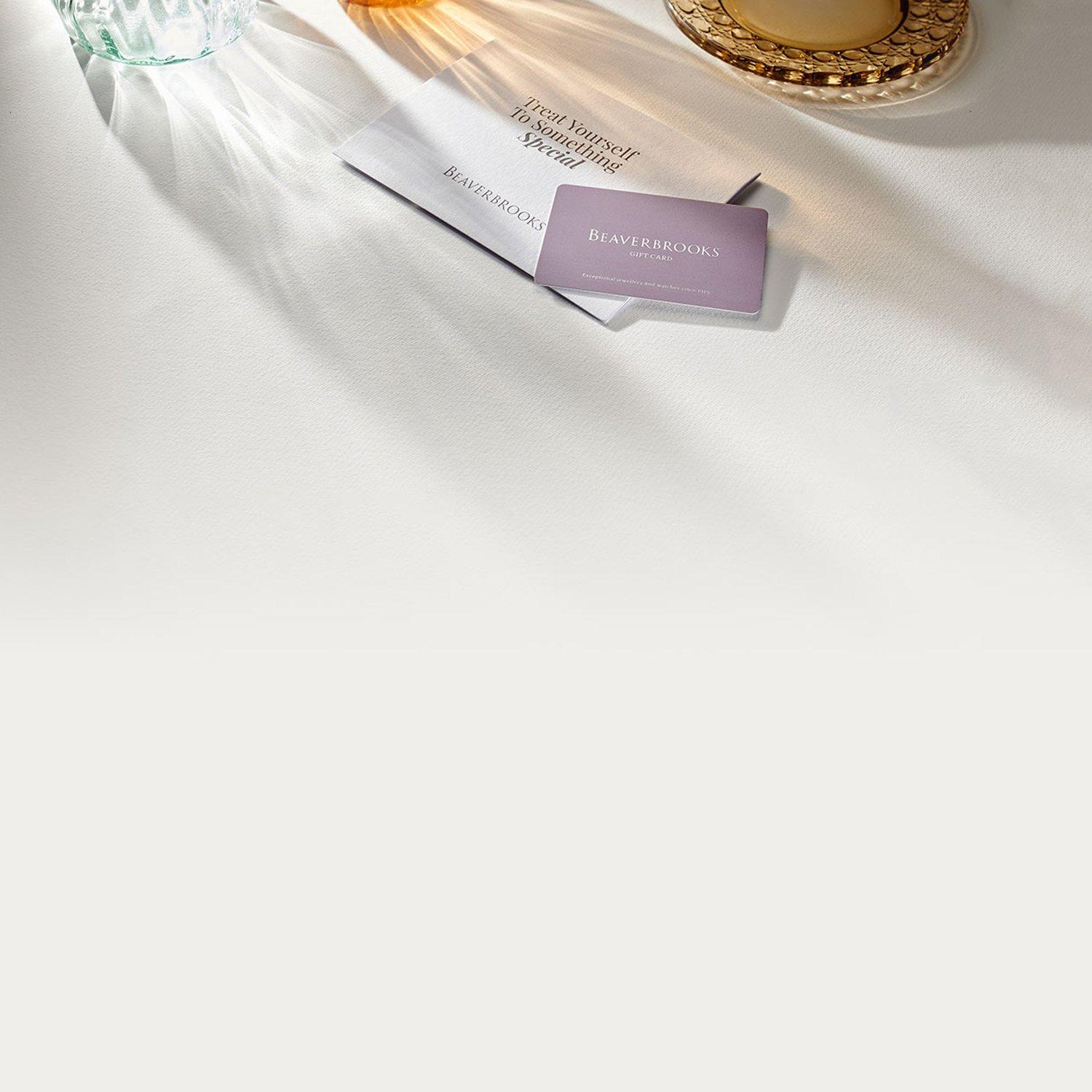 You can purchase and use a Beaverbrooks Gift Card both online and in any of our stores. If you order online, it will arrive loaded with the amount of your choice and placed in a card and envelope within a standard delivery box. Why not add a personalised message too?