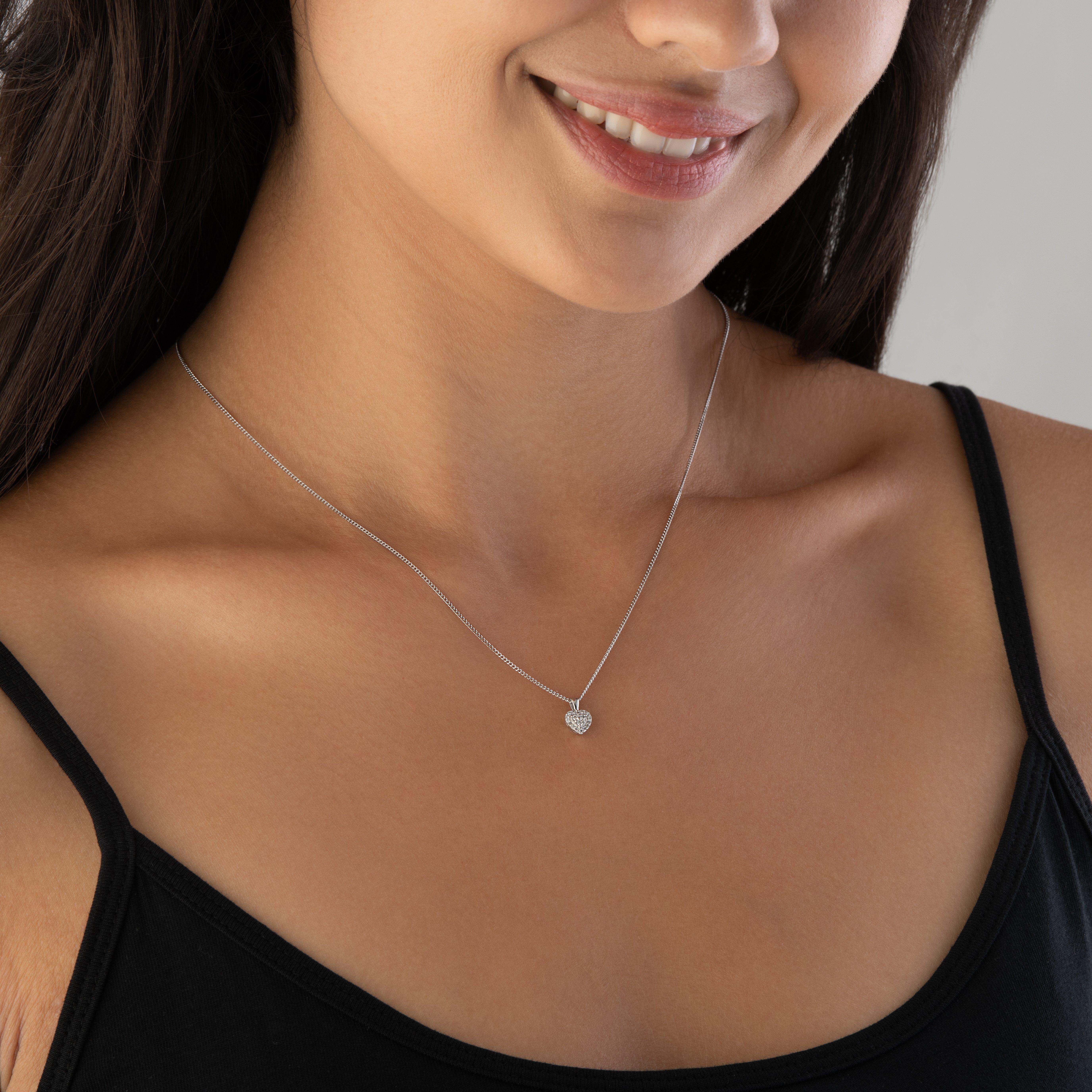 9ct White Gold Diamond Heart Pendant