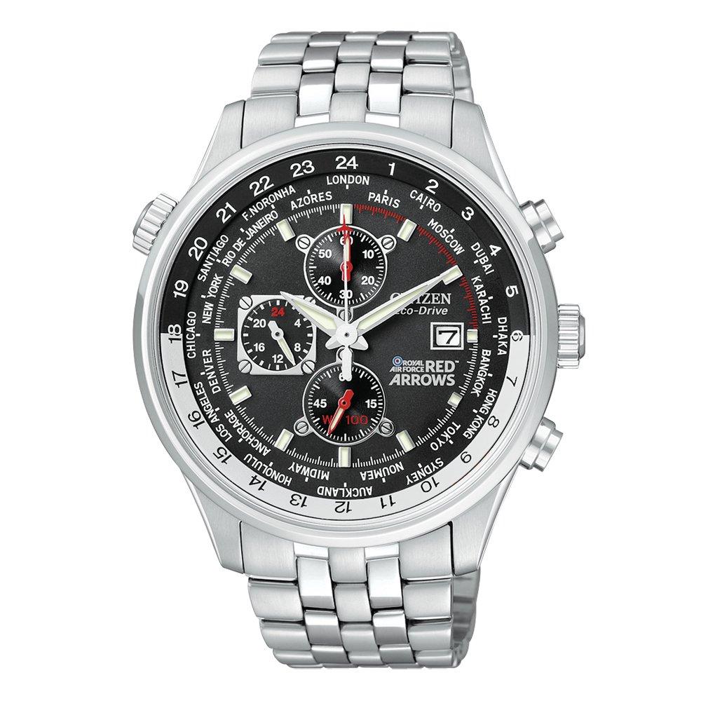 Embodying precision, innovation, and bold design, this Citizen Red Arrows 43mm Stainless Steel Chronograph Eco-Drive Men's Watch takes inspiration from the elite Red Arrows team. Combining robust functionality and a sophisticated aesthetic, make a powerful statement on your next adventure.