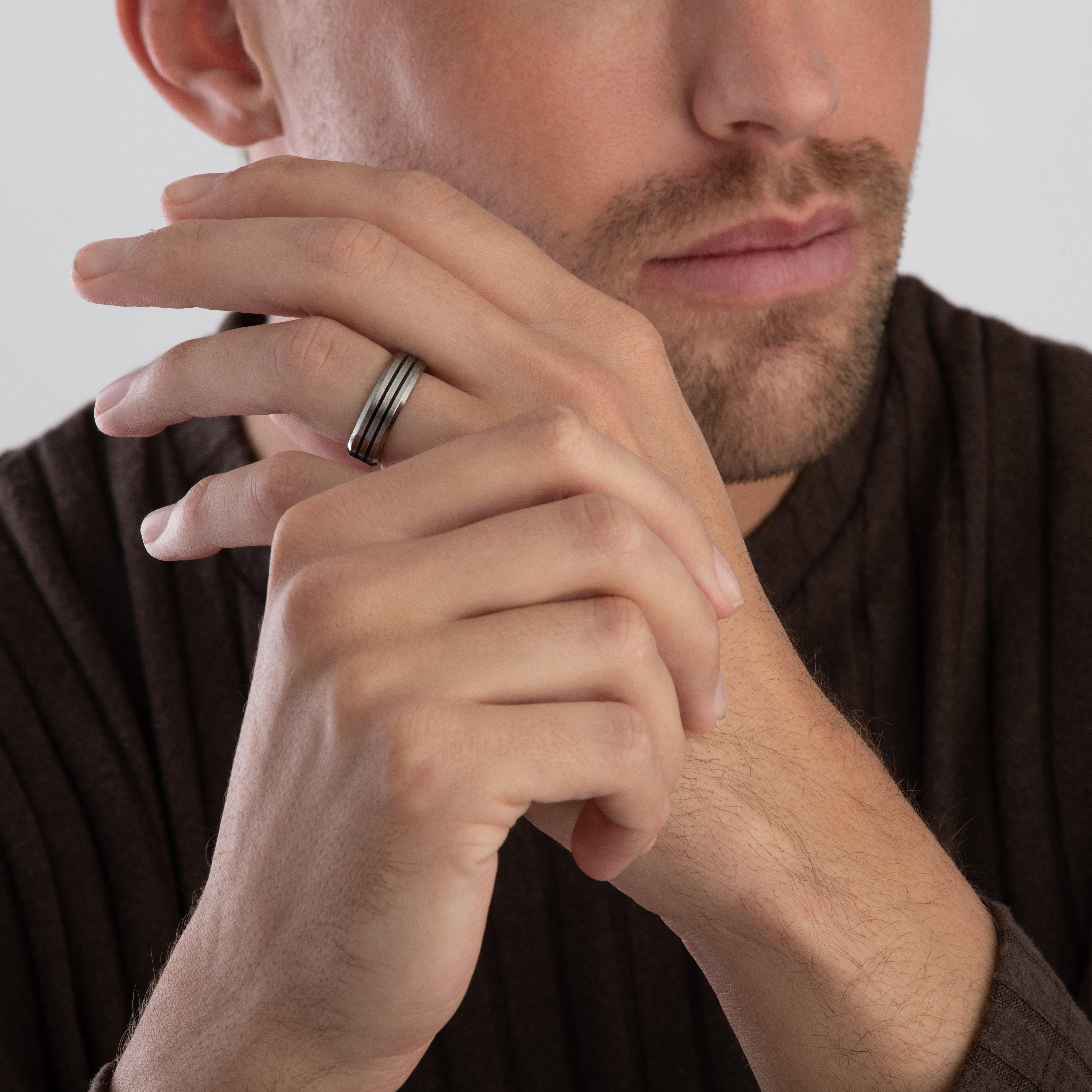 Titanium and Black Rhodium Men's Ring