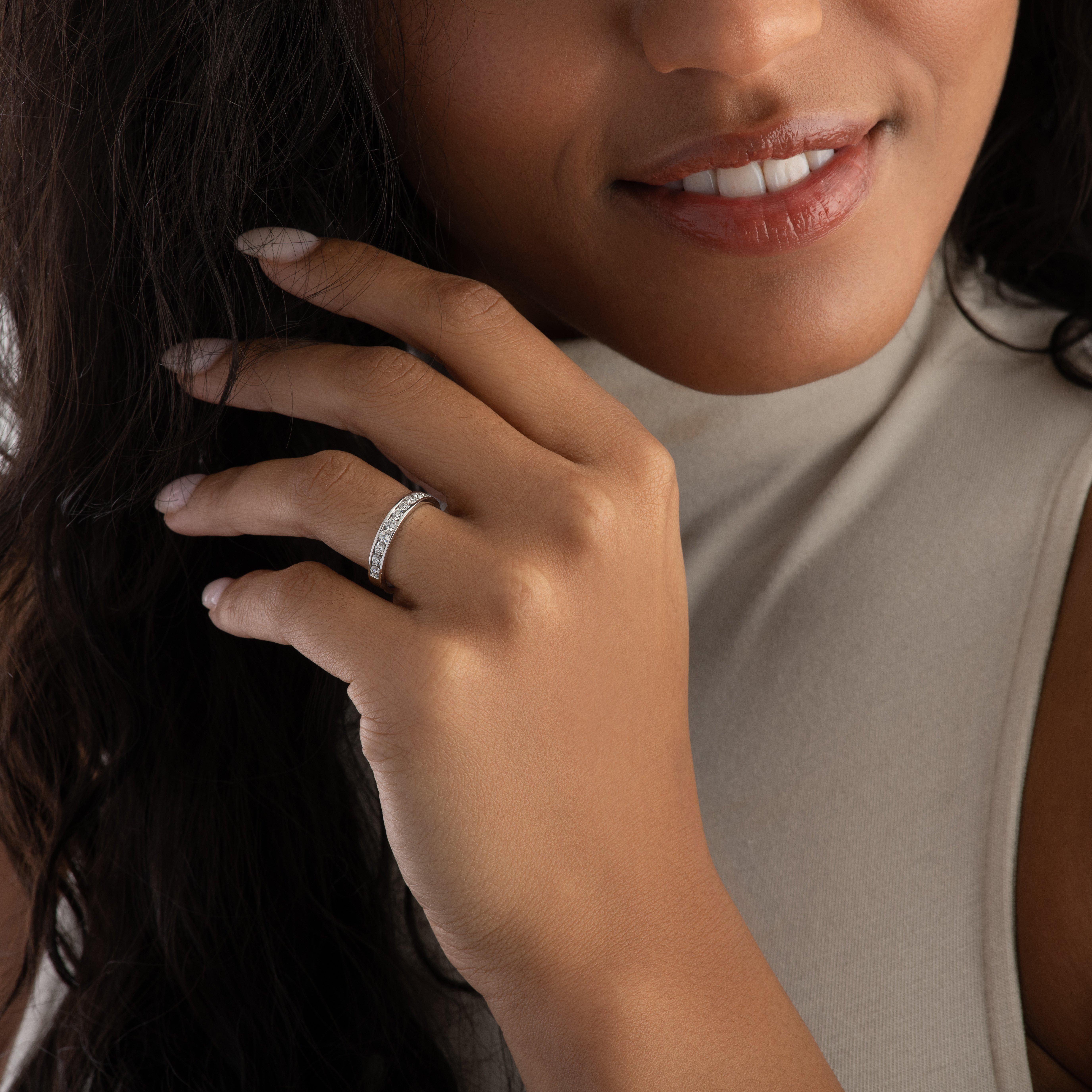 Exclusively designed for Beaverbrooks, this stunning Maple Leaf Diamonds Diamond Bands 18ct White Gold Half Eternity Diamond Ring is designed to celebrate love's greatest moments. The channel setting gives it a modern and sophisticated style.