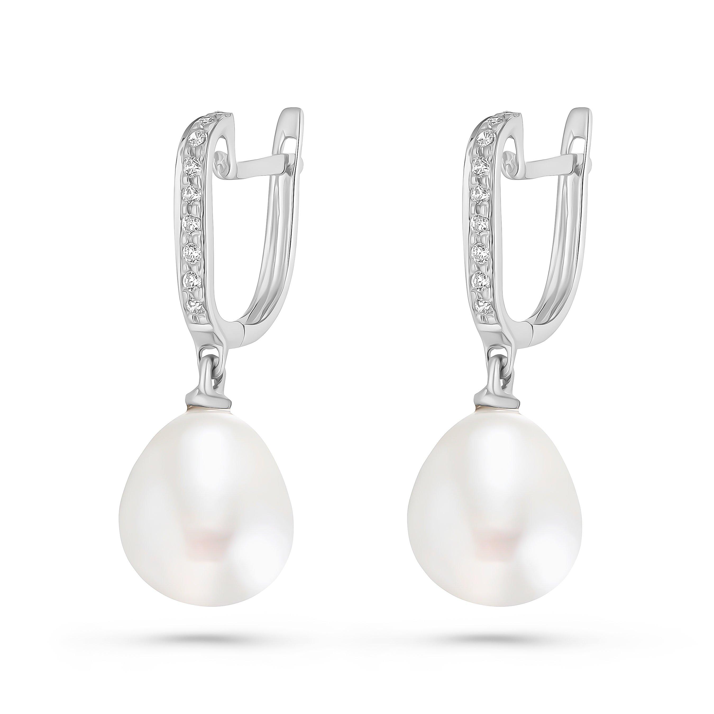 9ct White Gold Cubic Zirconia Freshwater Cultured Pearl Drop Earrings