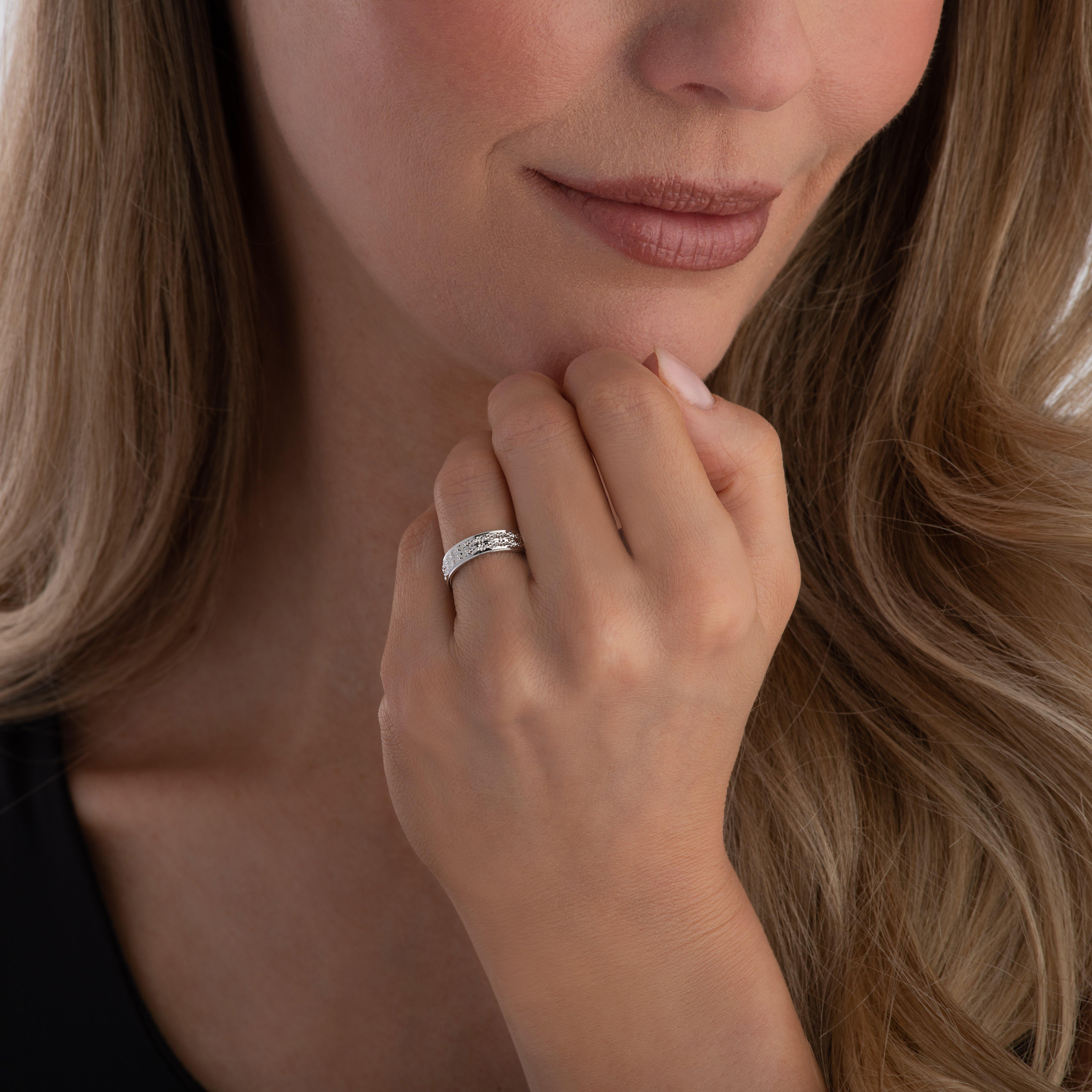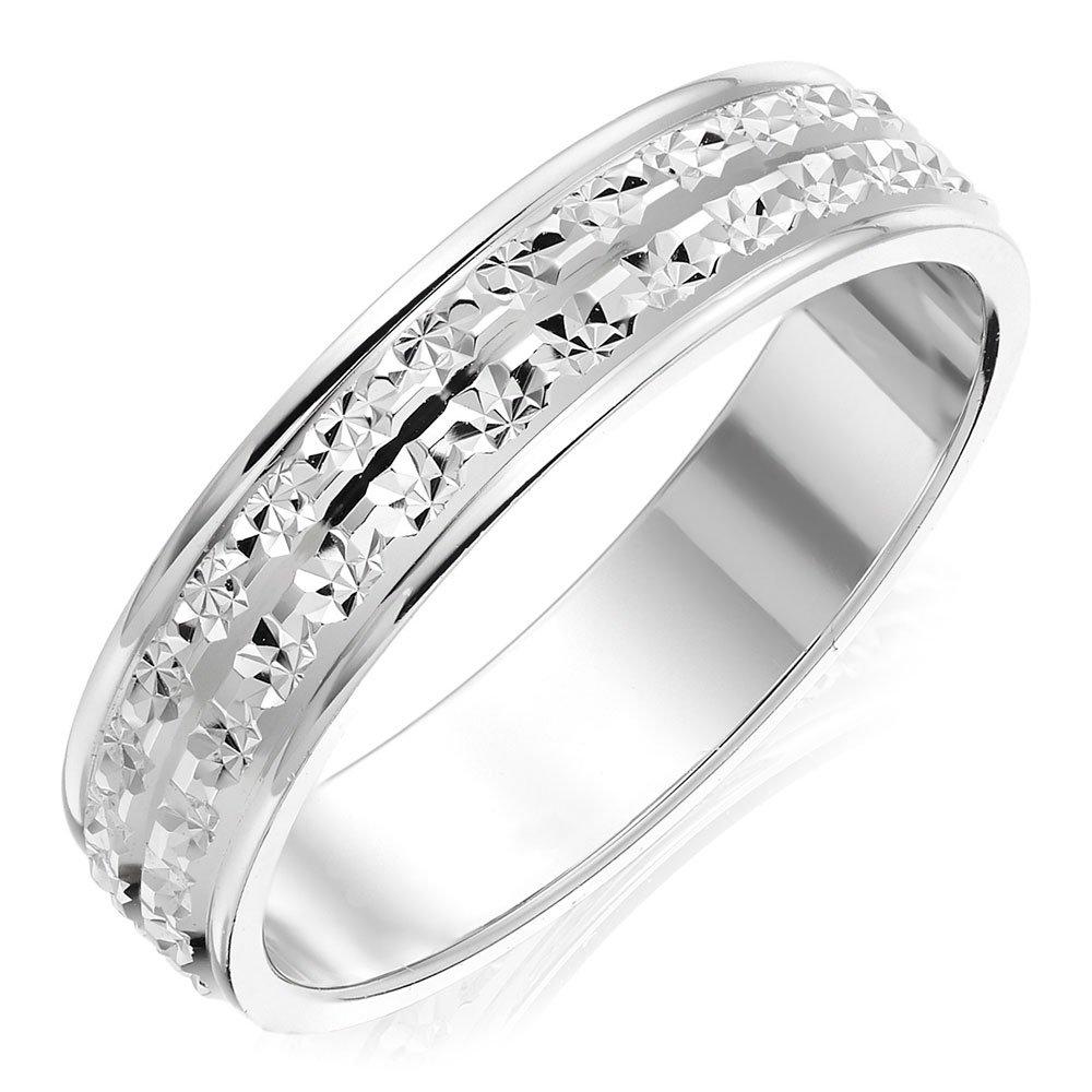 Modern and contemporary, this 9ct white gold sparkle cut ring is truly unique and eye-catching and the perfect way to celebrate your wedding day. Bold and beautiful, this ring is made in 9ct white gold and features both polished and matt finishes to create the magnificent sparkle effect that glistens whilst taking centre stage on your ring. A stunning unique style that's distinctive yet feminine and will always remind you of your most treasured memories in the most special and romantic way.