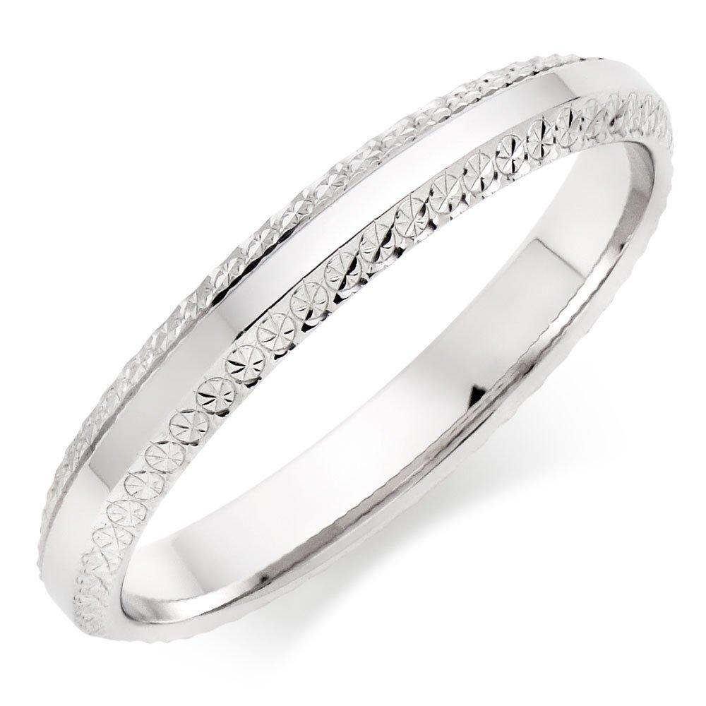 A stunning and unique design, this 18ct white gold sparkle cut ladies ring cleverly creates a beautiful sparkle. Showcasing wonderful craftsmanship, this gorgeous ring is made in glistening 18ct white gold and features a polished band that is further enhanced by two sides of bevelled sparkle cut 18ct white gold, which has been made to create a stunning sparkling effect, making this an exquisite, contemporary, and eye-catching design. Celebrate your special day and your fabulous style with this luxurious wedding ring, guaranteed to enhance your engagement ring beautifully.