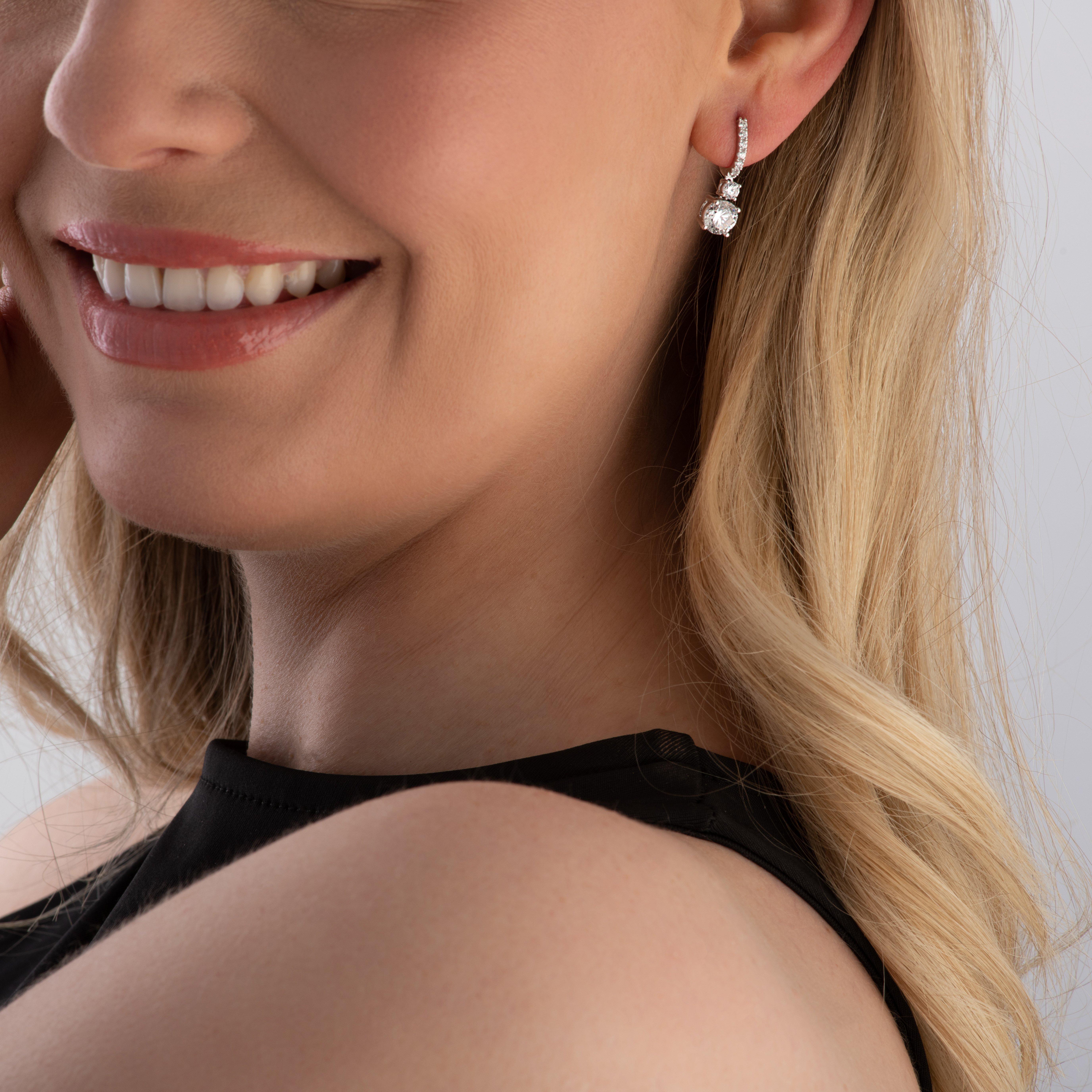 Designed to dazzle, these stunning sterling silver cubic zirconia drop earrings will make every look glamorous. Set in polished sterling silver which creates a modern and contemporary edge, these beautiful earrings feature two graduated brilliant cut cubic zirconia which are suspended beneath a glittering row of smaller stones. The perfect partner for your little black dress, wear yours with swept back hair and a pretty tennis bracelet for the ultimate in style and sophistication.