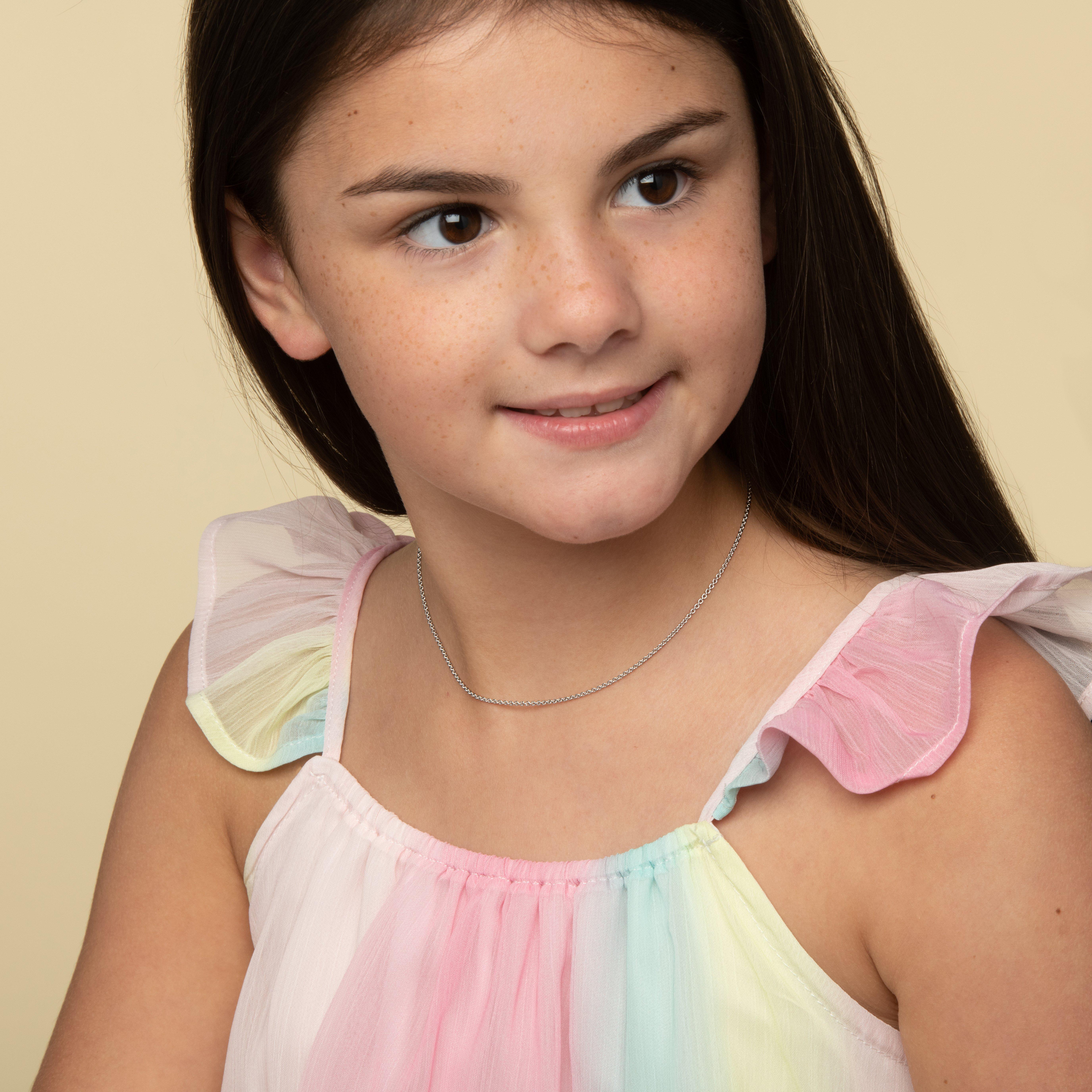 An essential piece for her grown up jewellery box, this Mini B Silver Trace Chain 35cm is simply stunning. Perfect for when your little princess wants to dress up and will complement all of her lovely outfits perfectly.