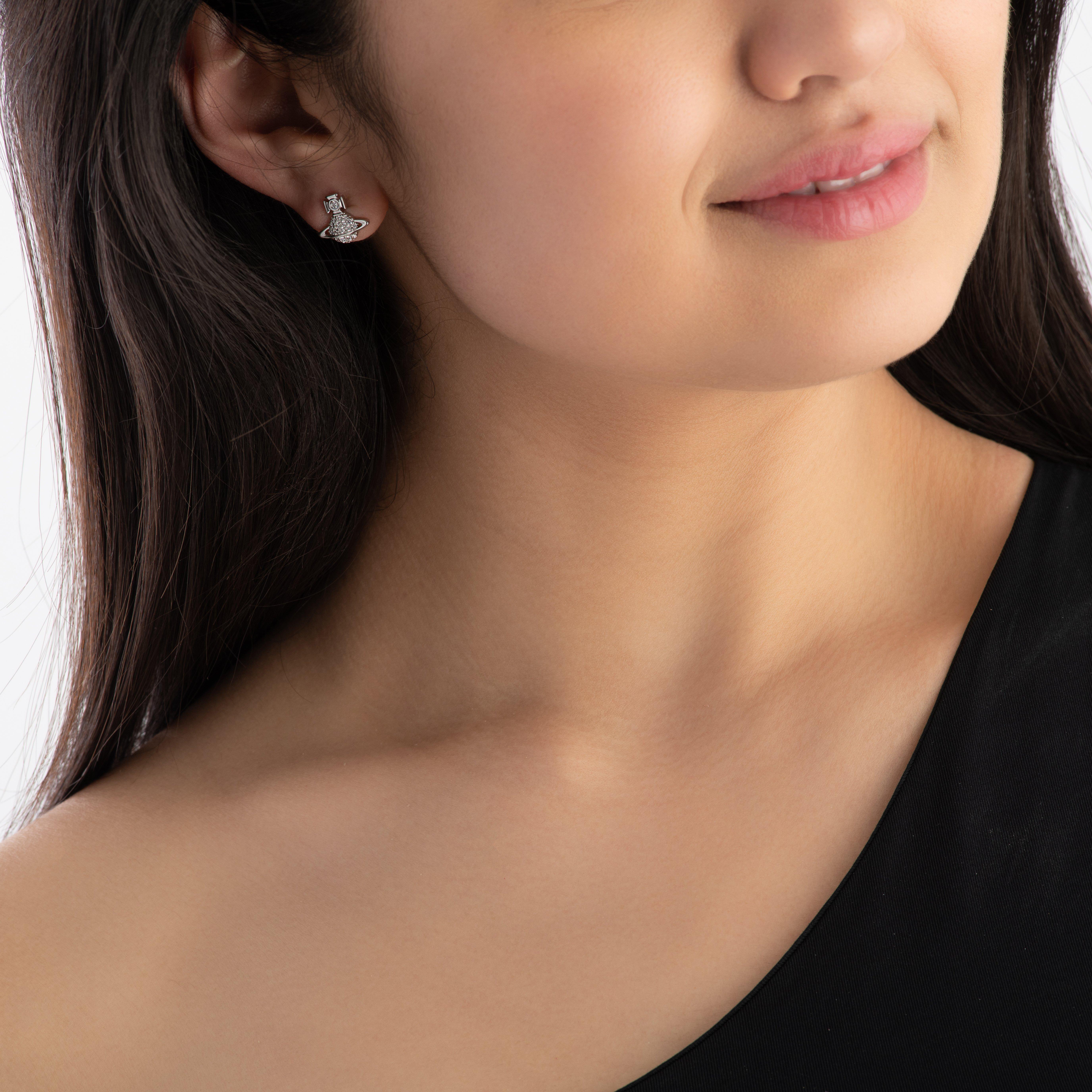 Add a touch of iconic style to your looks with these Vivienne Westwood Tamia Silver Cubic Zirconia Earrings, the perfect choice for Vivienne Westwood fans. Putting the brand’s most famous symbol in the spotlight, these orb shaped stud earrings come adorned with dazzling cubic zirconia for a sparkling finish.
