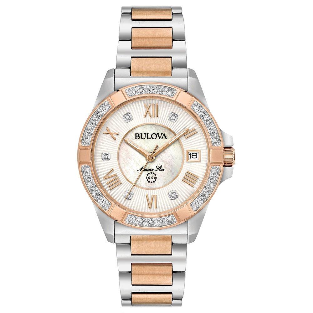 Bulova Marine Star 32mm Rose Gold Plated Diamond Ladies Watch