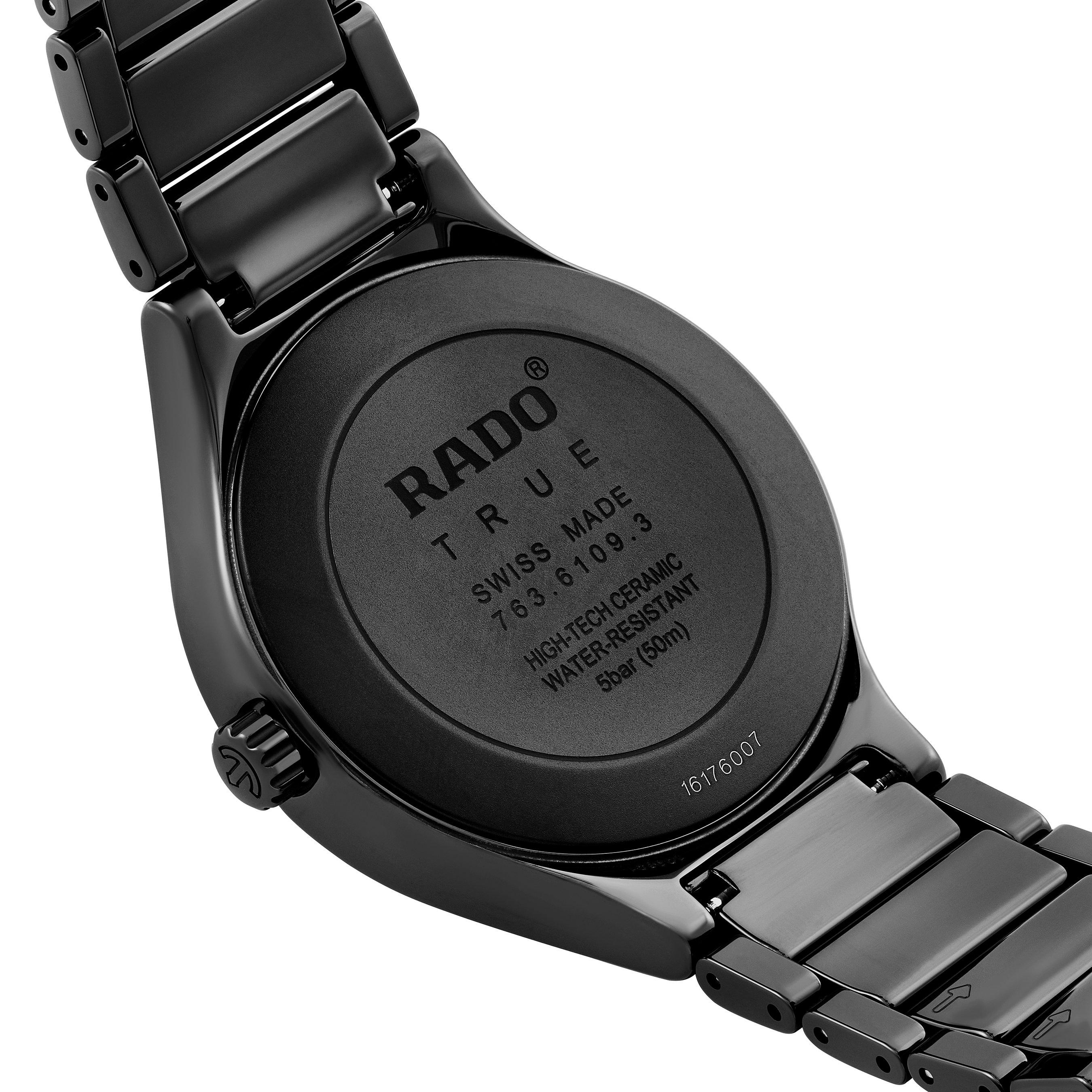 Step into a world of innovation and elegance with this Rado True Round 40mm High-Tech Ceramic Diamond Automatic Watch, harmonious blend of precision engineering and timeless style. Reimagined for modern wearers but reliably and distinctively Rado, this timepiece will keep its shine for years to come.