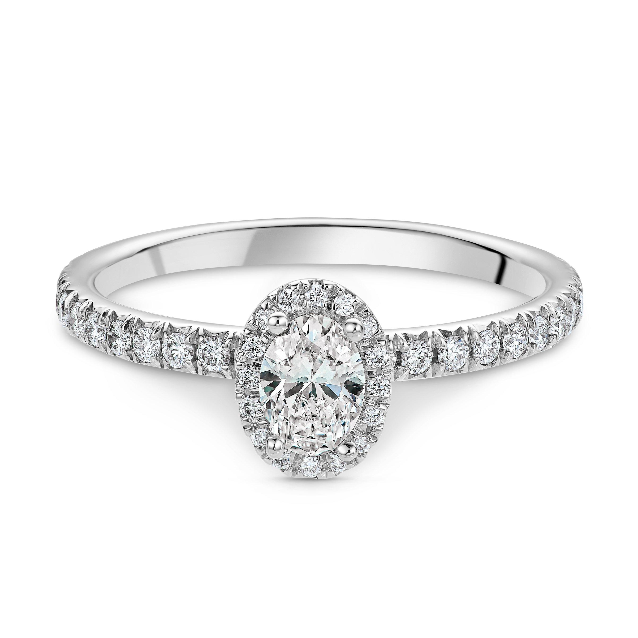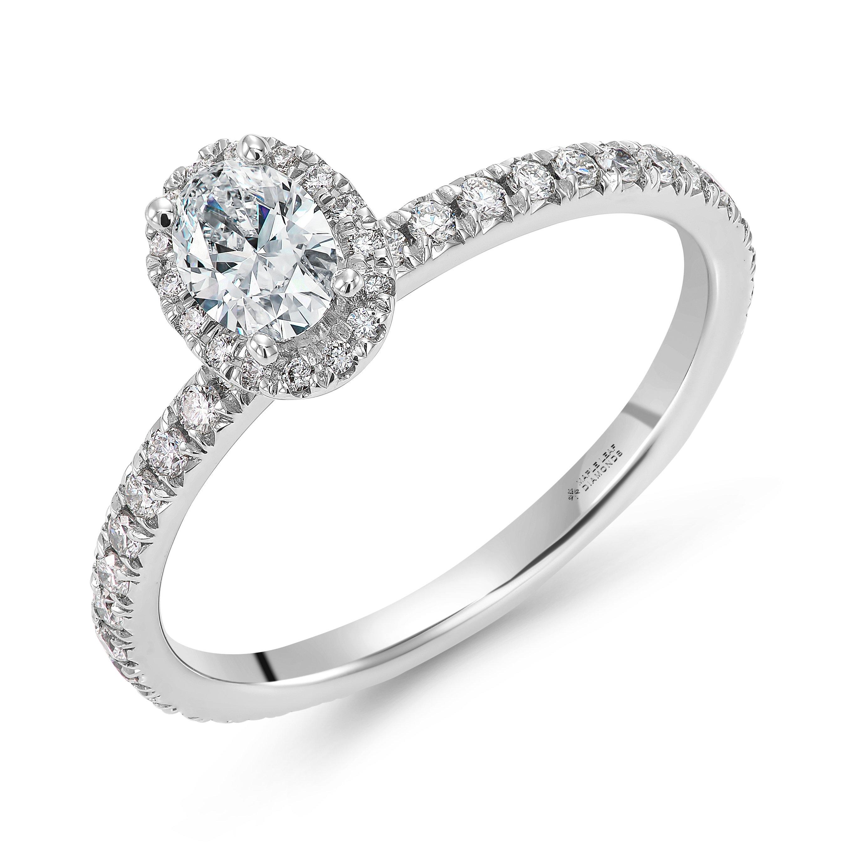 Dazzling with the most incredible fire and sparkle, this Maple Leaf Diamonds Classics 18ct White Gold Diamond Ring will take their breath away. The stunning oval cut diamond at its heart is made even more eye-catching with a glamorous diamond halo.