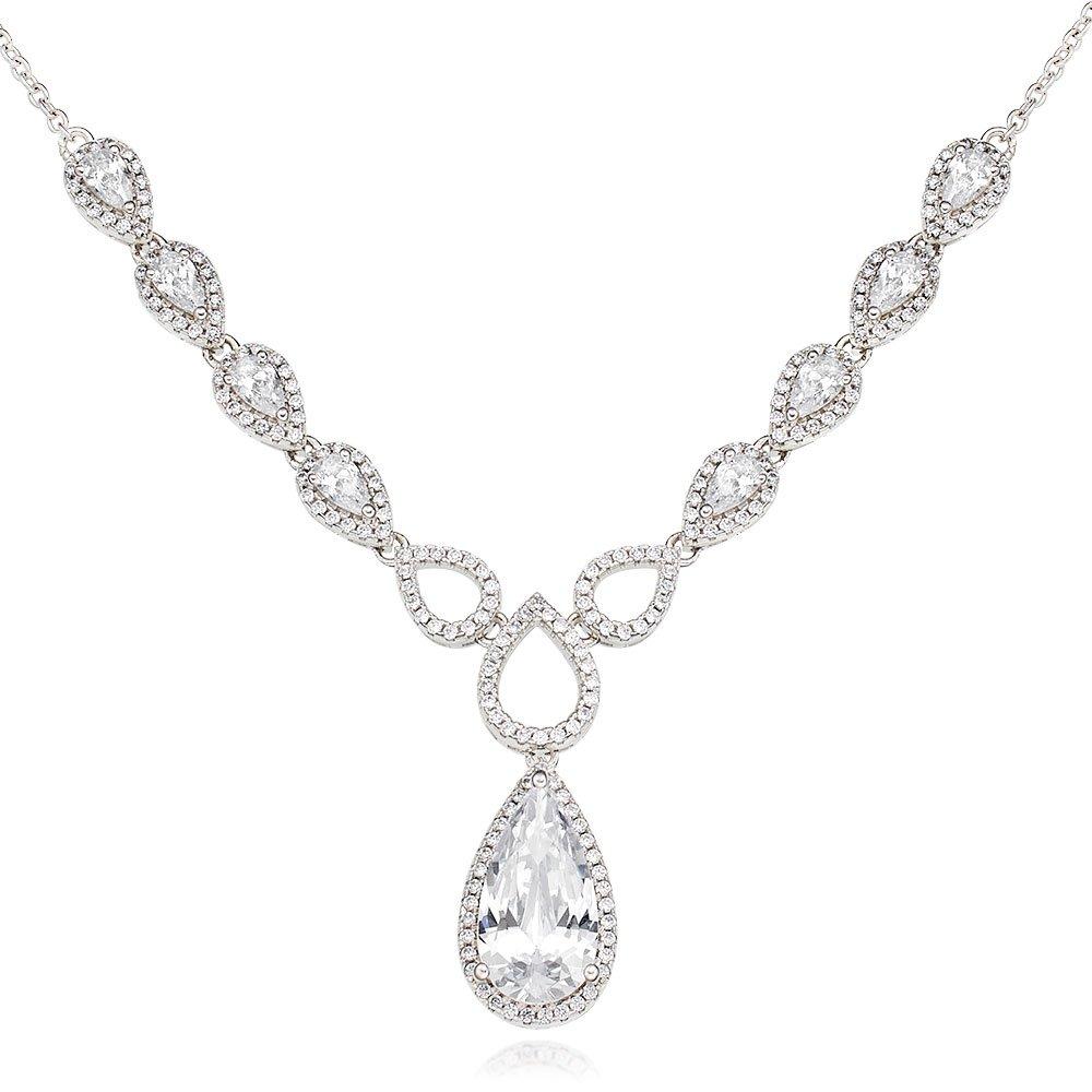 Beautiful and luxurious, this silver cubic zirconia pear halo necklace will transform all of your favourite evening dresses. Designed in silver, this necklace features a delicate chain that's enhanced by dazzling pear-shaped cubic zirconia with a halo of smaller round stones that leads up to the beautiful drop that dazzles beautiful and sparkles in every light. Wear yours with a strapless LBD for the ultimate wow factor.