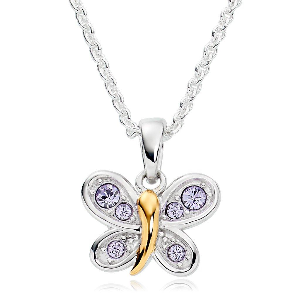 Let your little one flutter and sparkle with this beautiful Mini B Silver and Gold Plated Crystal Butterfly Pendant.