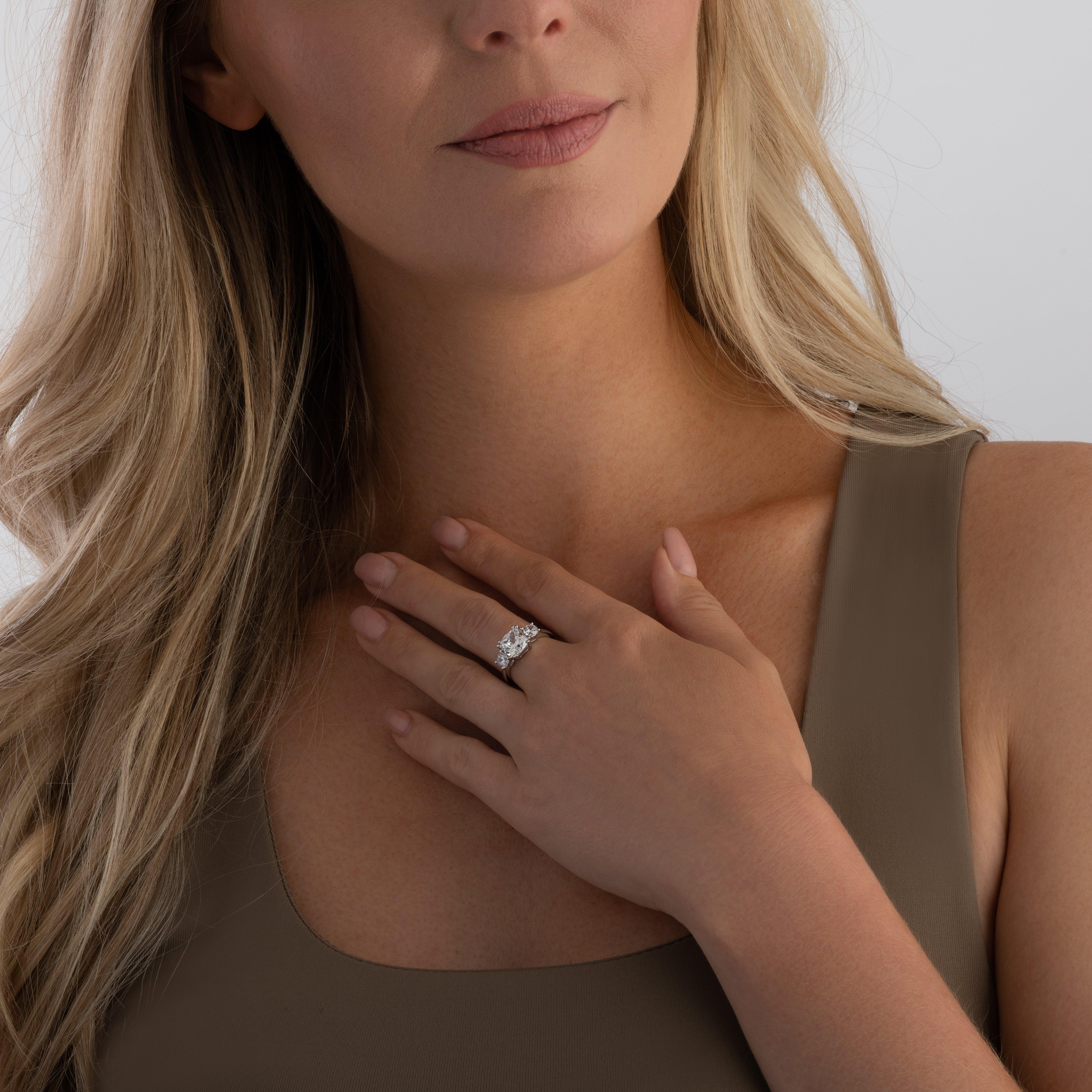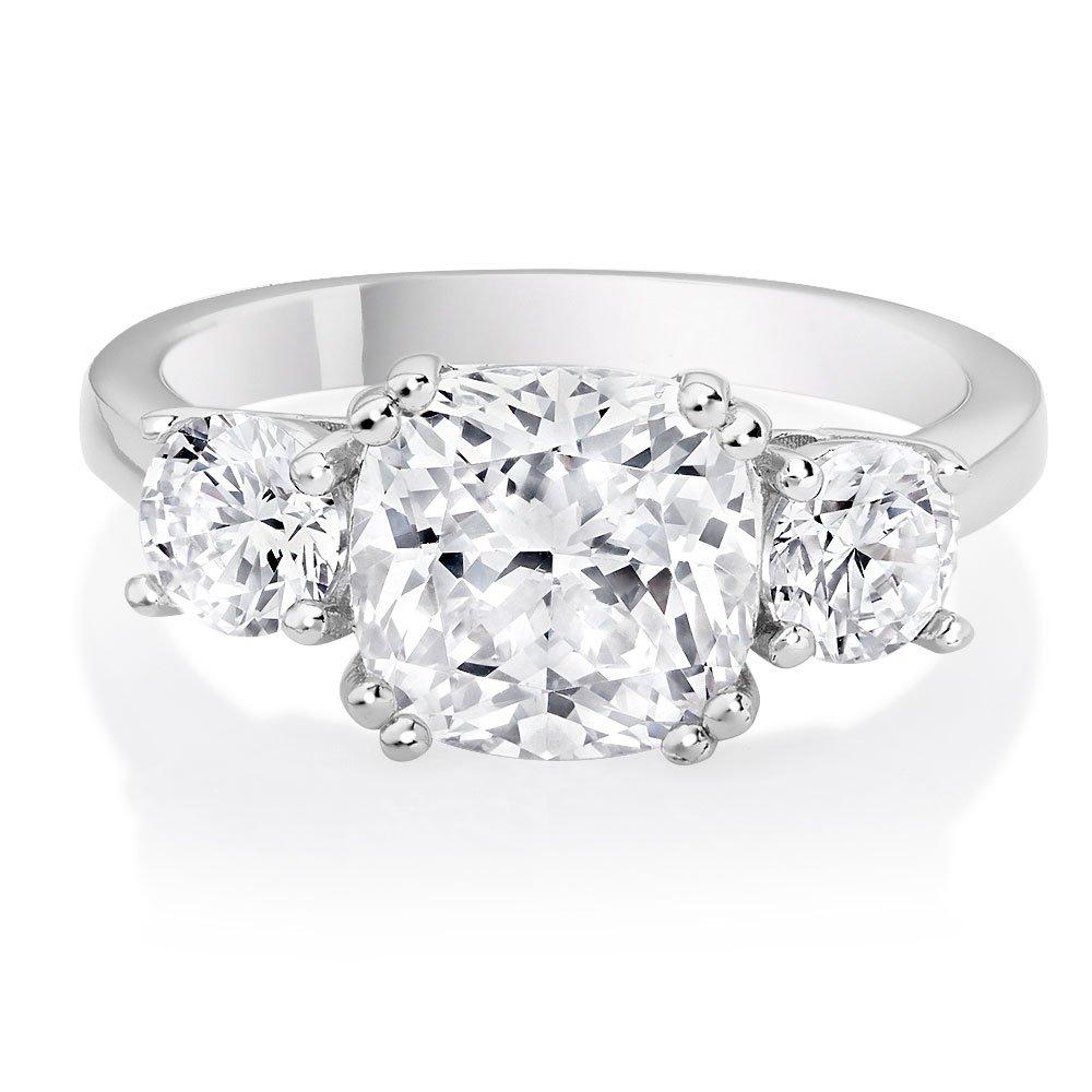 Silver Cubic Zirconia Three Stone Ring