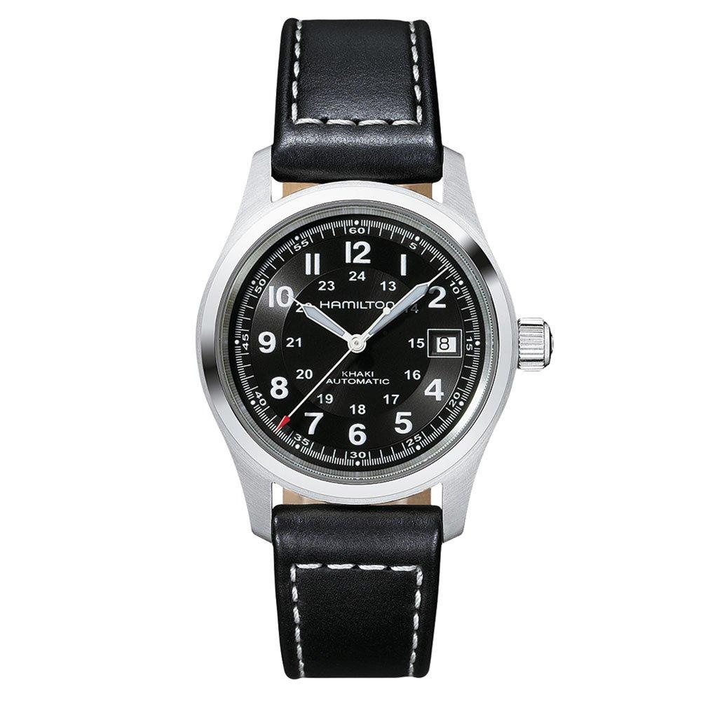 With military-inspired features, this Hamilton Khaki Field automatic men's watch is reliable, functional and resilient. Fusing Swiss watch design with innovation and creativity, Hamilton showcase personality throughout every watch collection to create statement timepieces.