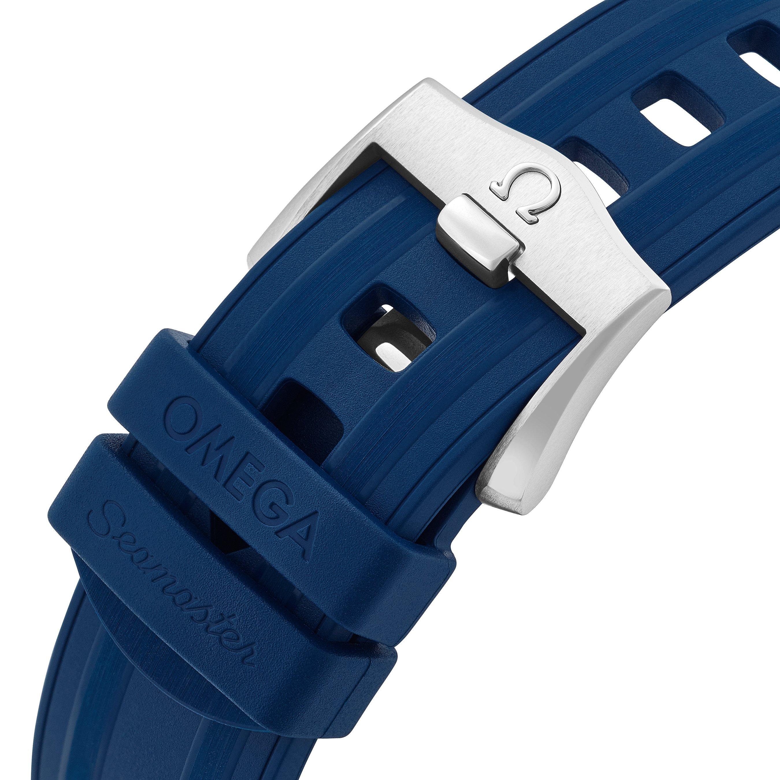 - Presented on a blue rubber strap and fastened with a buckle