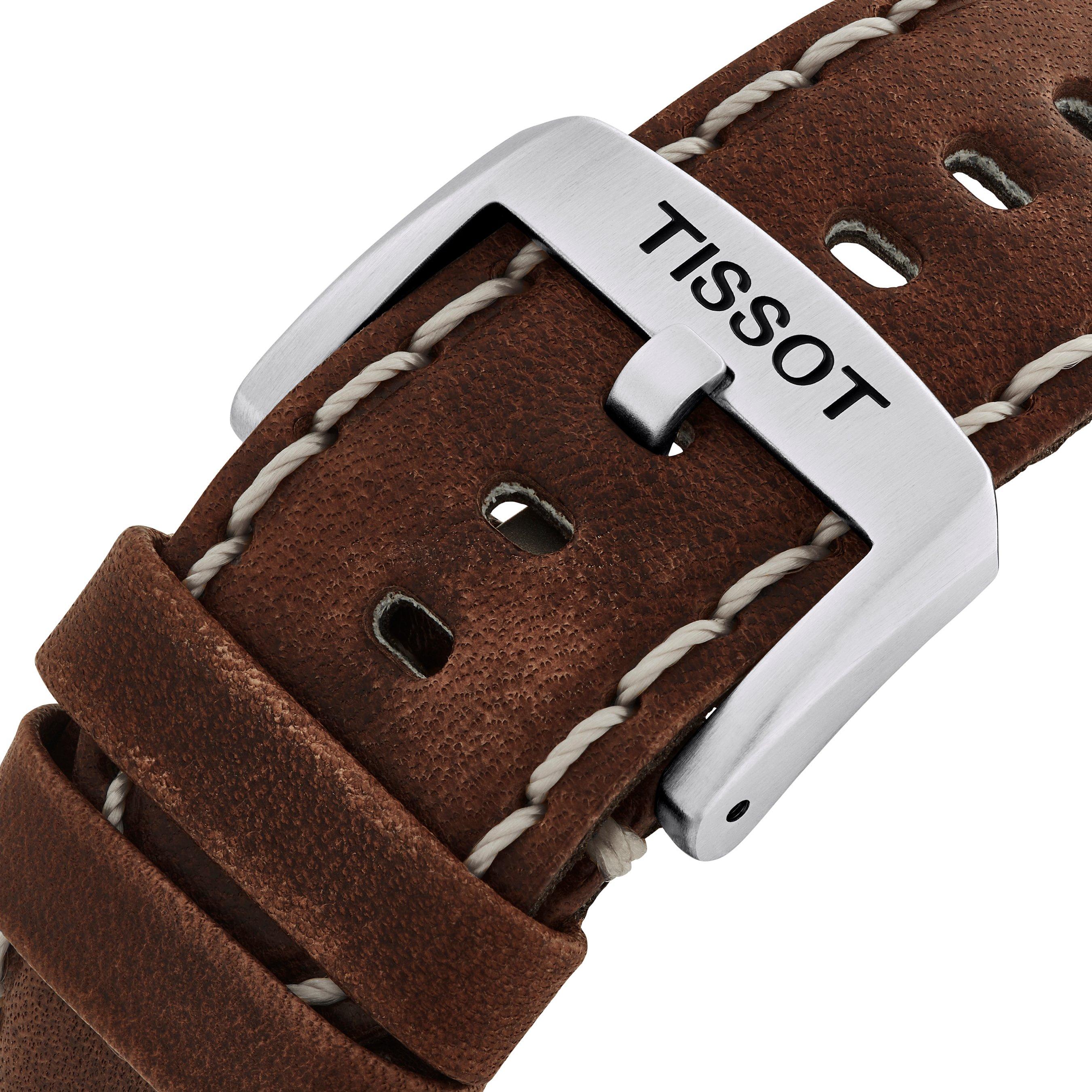 - Presented on a brown leather strap with buckle fastening