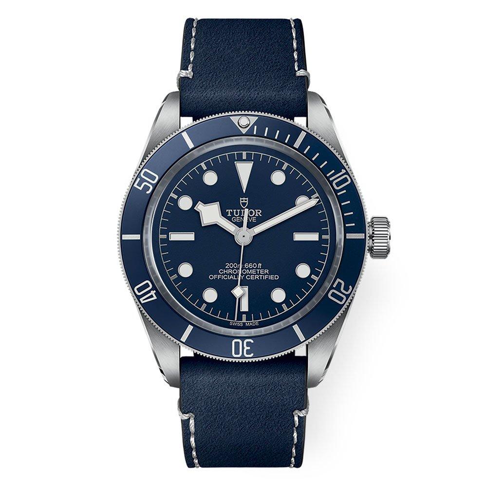 - Blue, domed dial with Snowflake hands and white dot hour markers