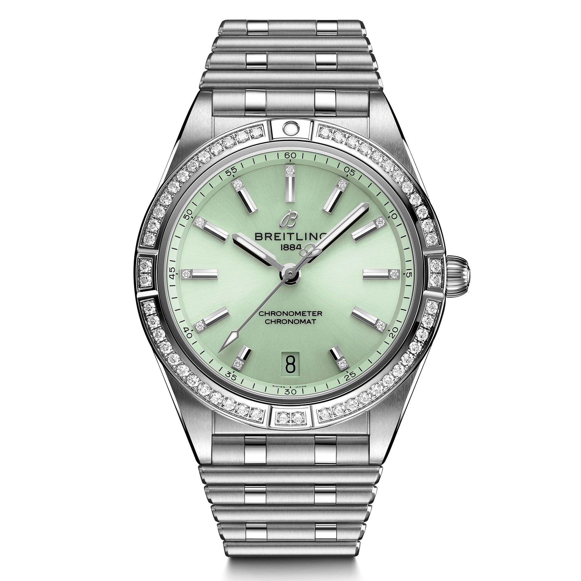 - Green dial with diamond hour markers