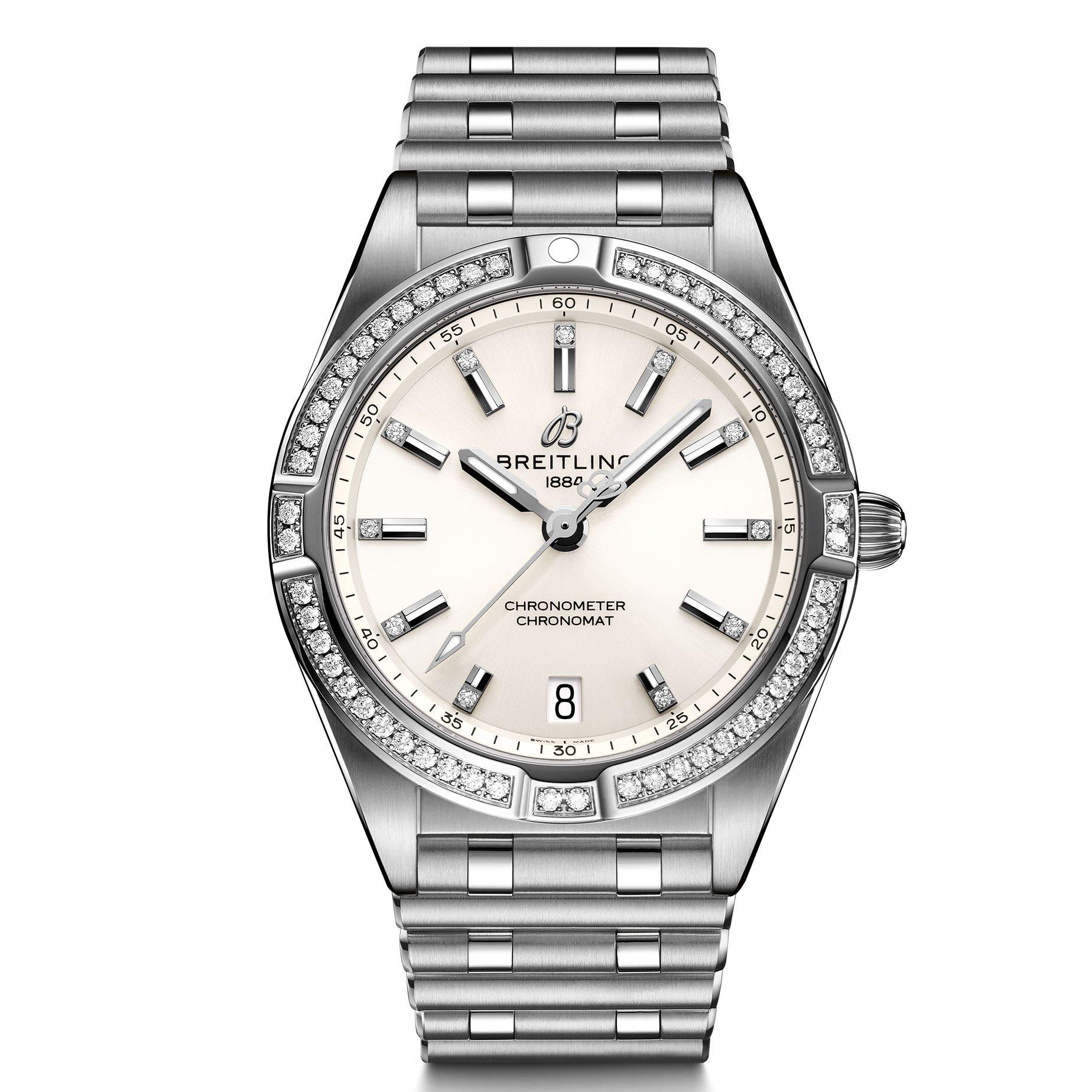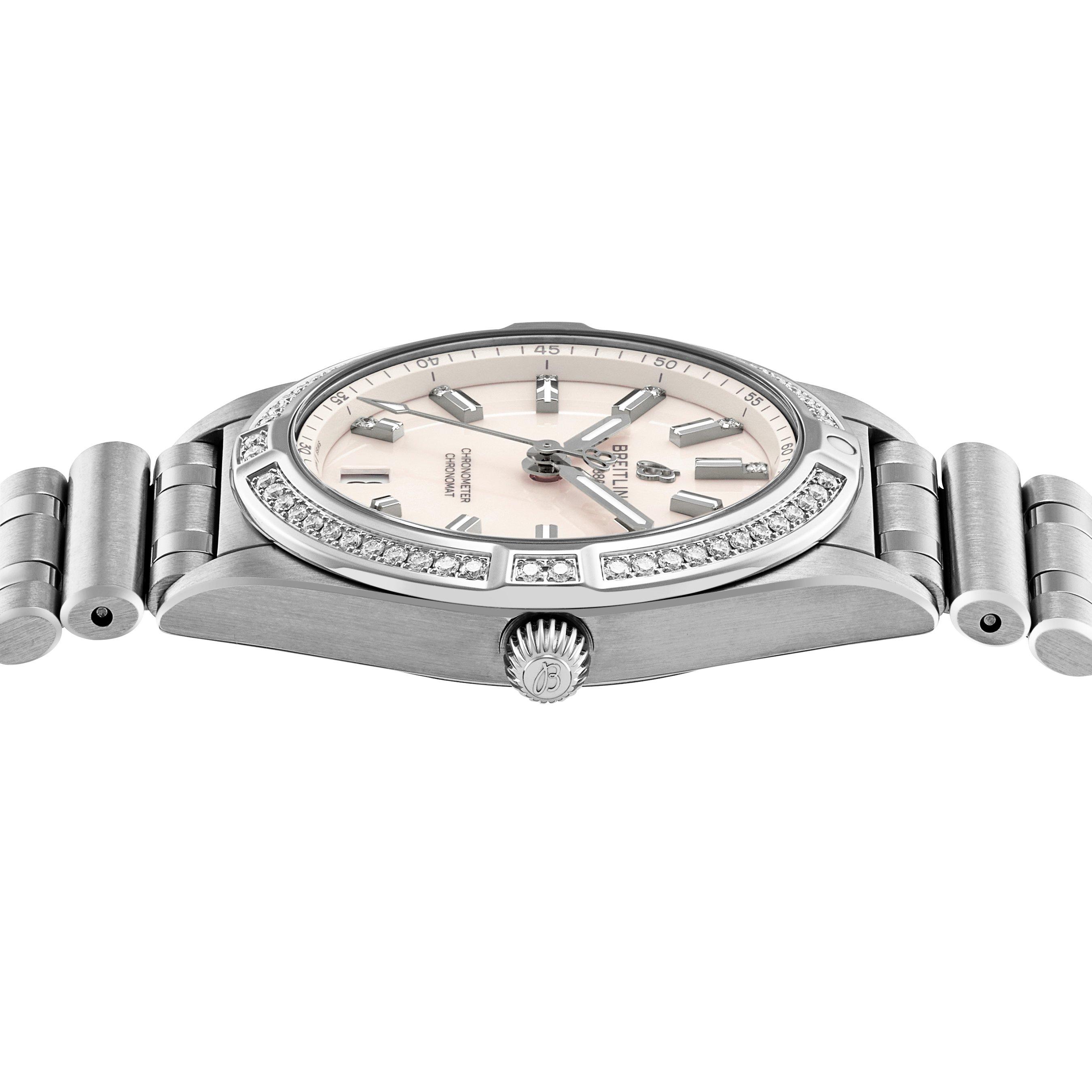 Perfect for those who crave extra sparkle, this gorgeous Breitling Chronomat 32mm Diamond Ladies Watch is as robust as it is elegant. Its iconic style gives a nod to tradition whilst firmly looking ahead to the future.