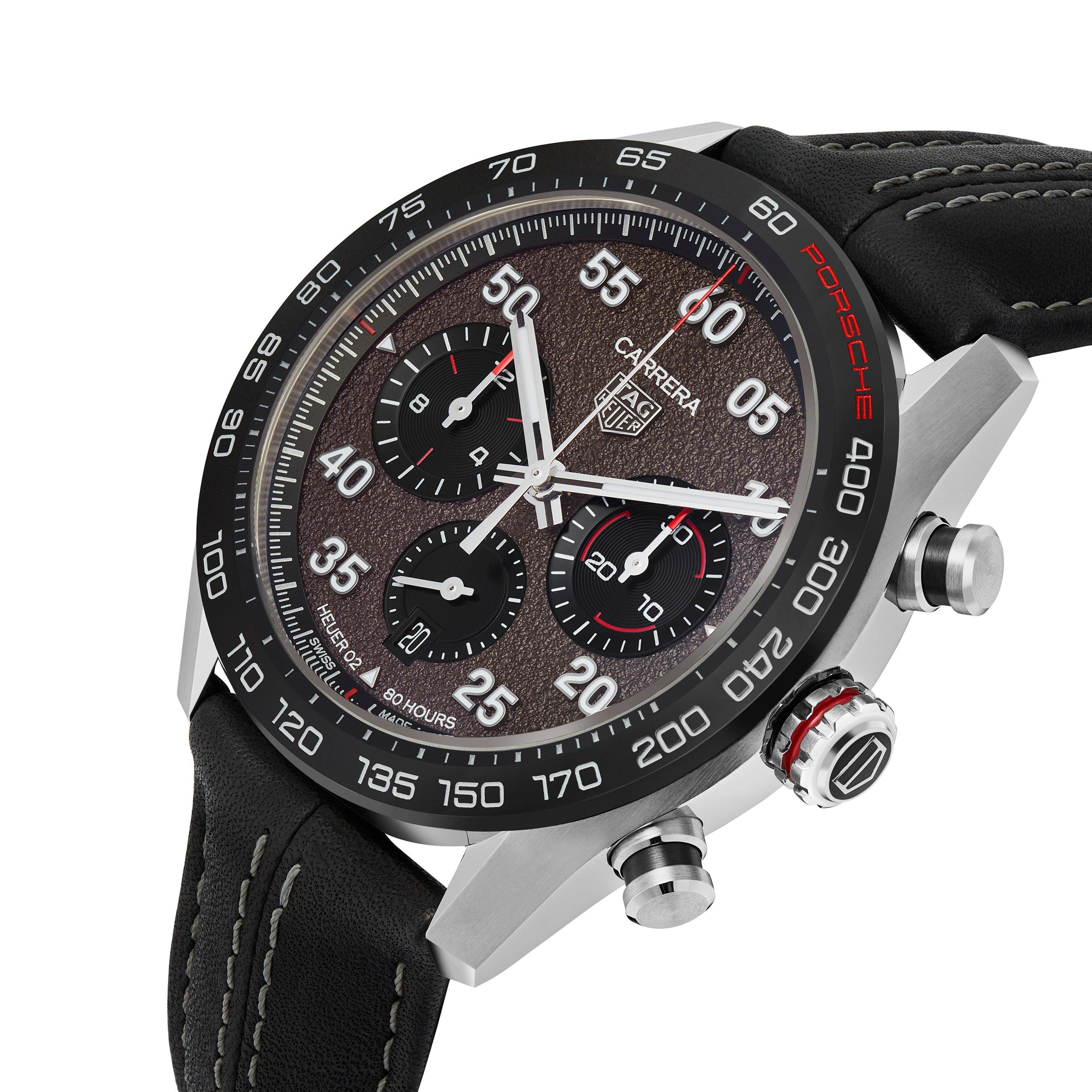 - Powered by the in-house Calibre Heuer 02 automatic movement, visible through the case back