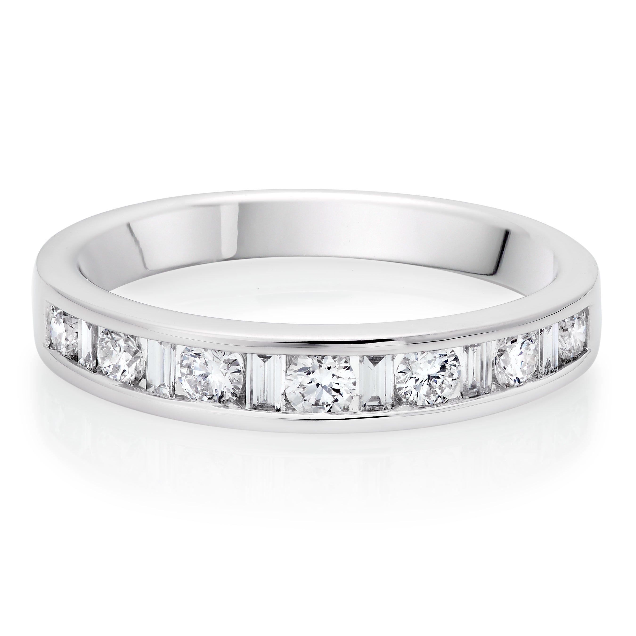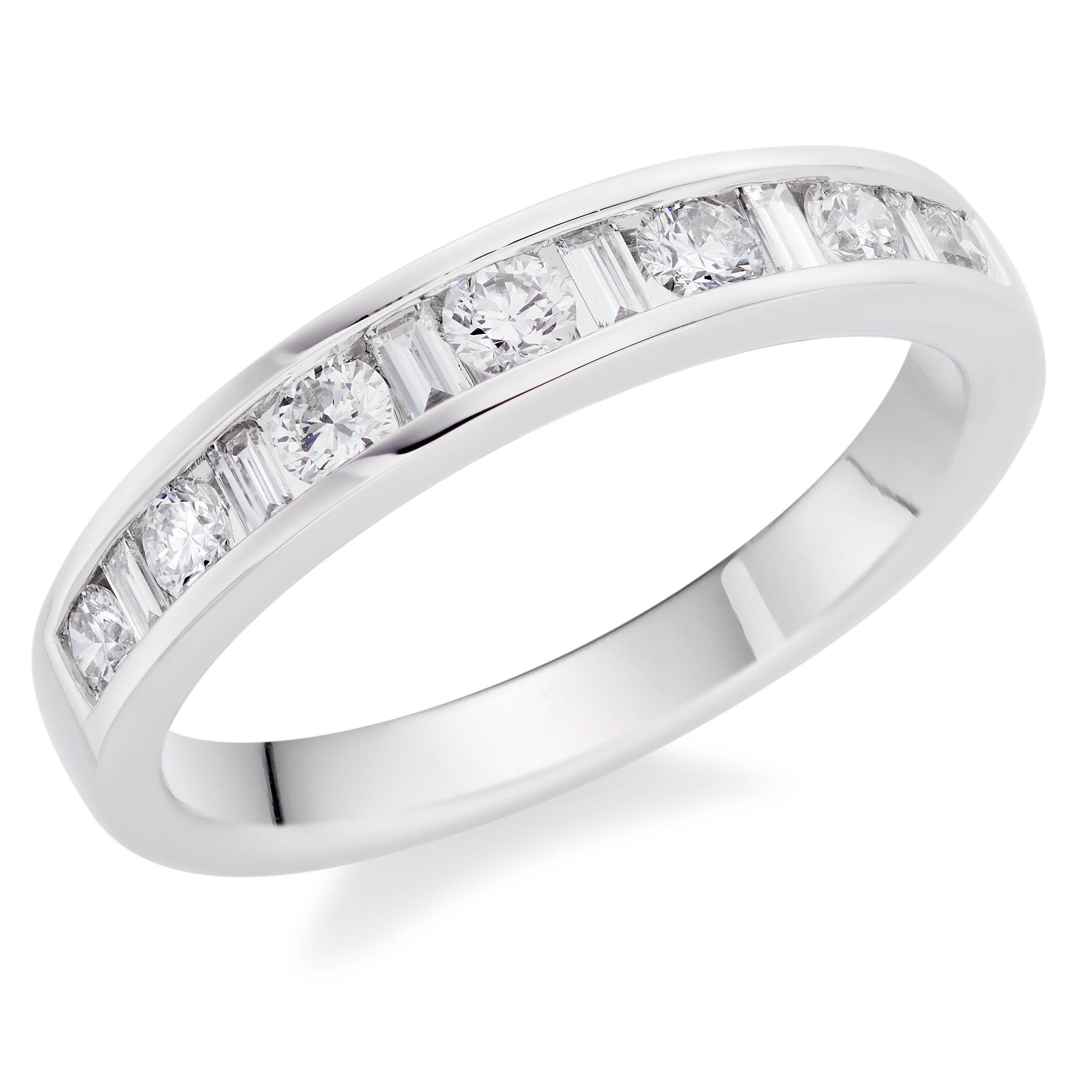 The most beautiful ring for those special moments in life, this Platinum Diamond Half Eternity Ring showcases vintage-inspired design through the baguette cut and round brilliant diamonds.