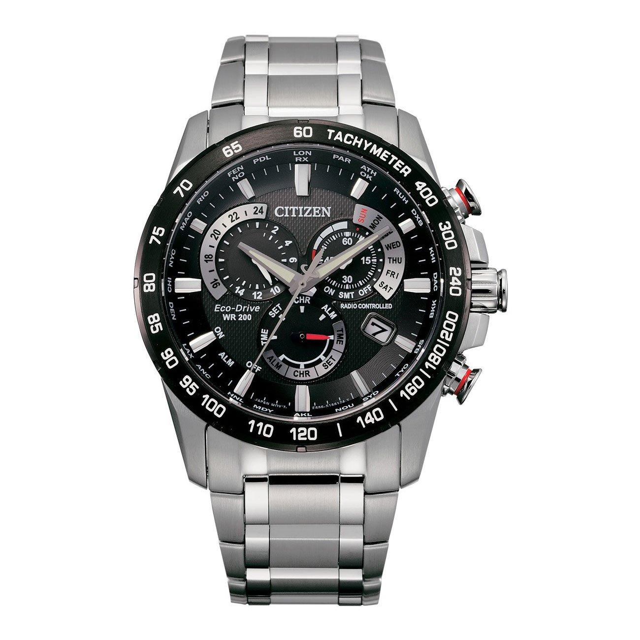 Blending passion for speed with high-performance, this Citizen Perpetual Chrono A.T 43mm Stainless Steel Eco-Drive Men’s Watch features radio-controlled atomic clock synchronisation for superior accuracy in 24 time zones.