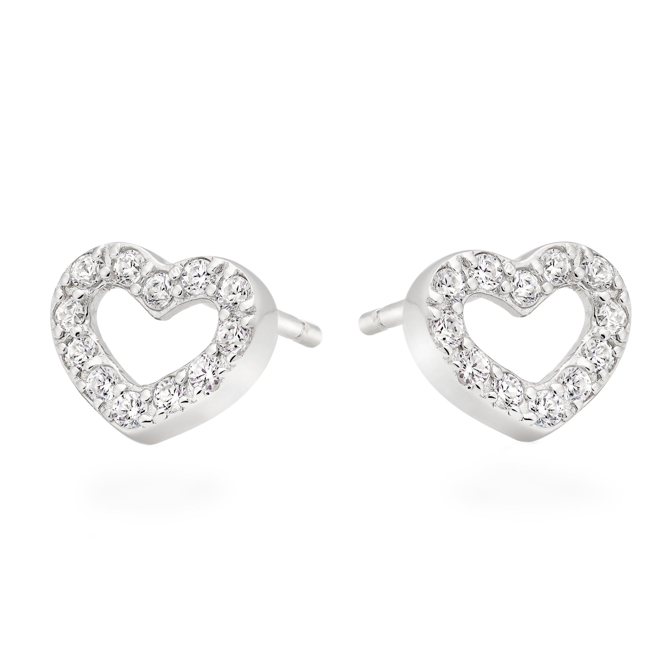 Silver Cubic Zirconia Heart Stud Earrings