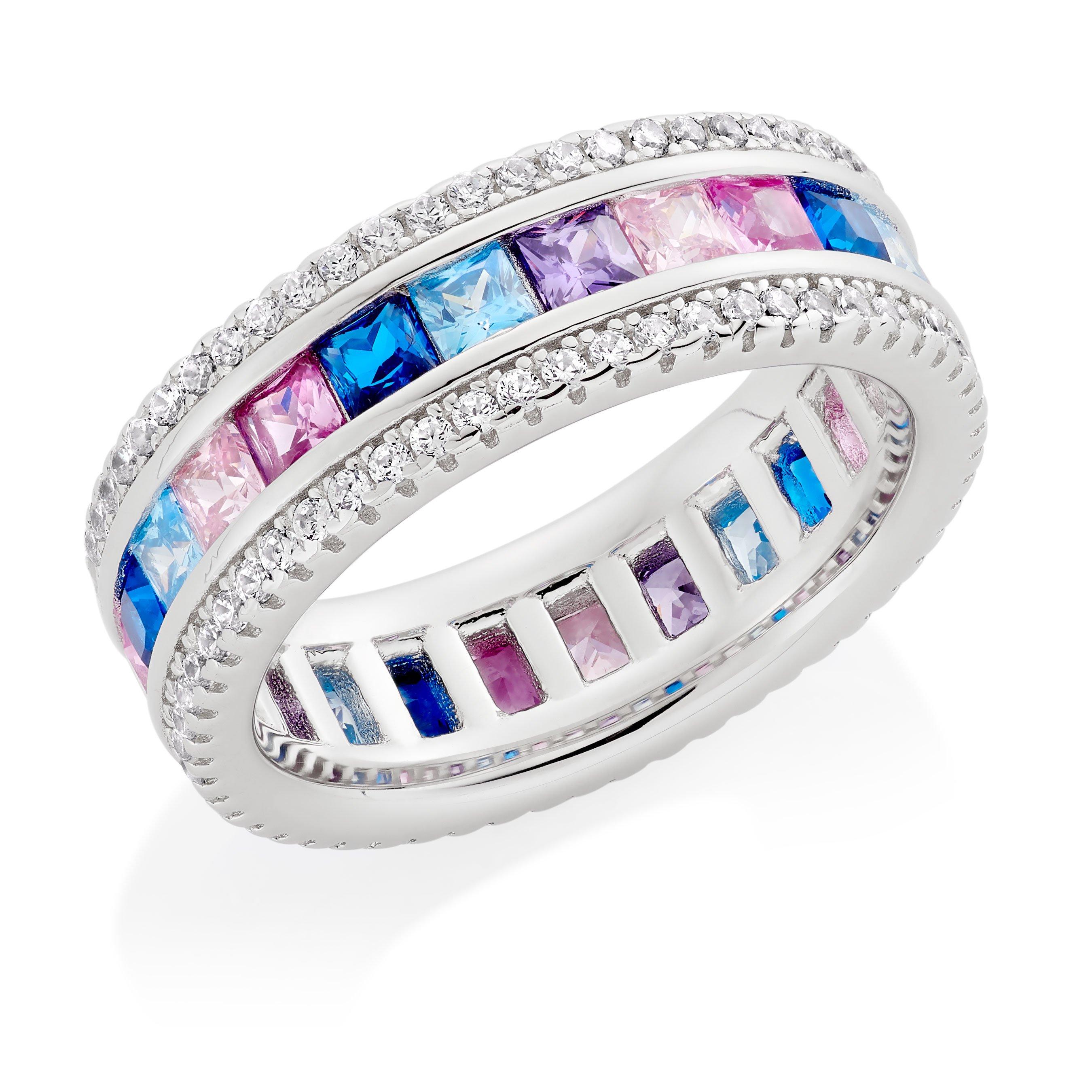 Silver Multi Coloured Cubic Zirconia Ring