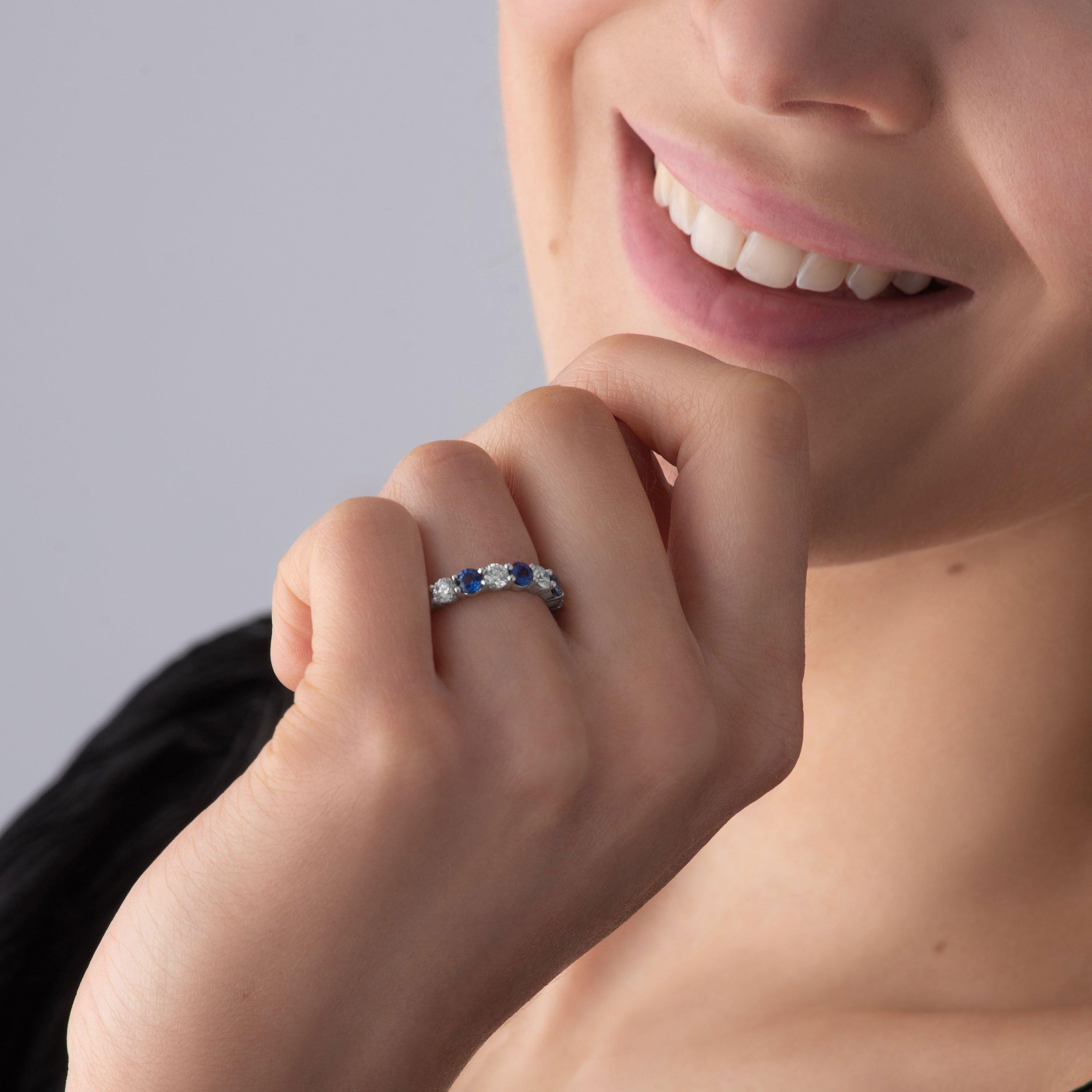A ring as unique and special as your love, this 18ct White Gold Diamond Sapphire 2mm Half Eternity Ring will be treasured forever.