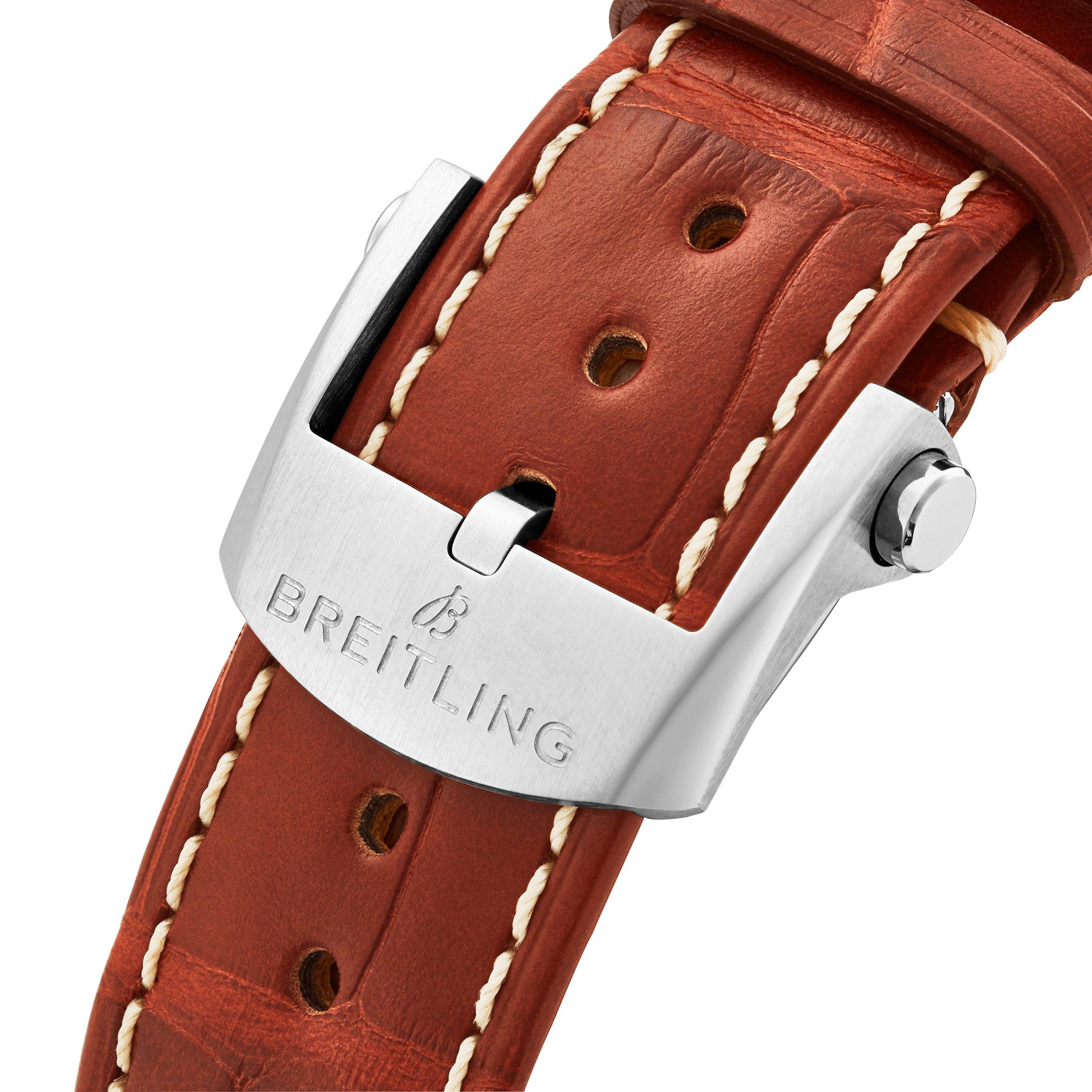 - Presented on a gold-brown alligator leather strap with folding buckle