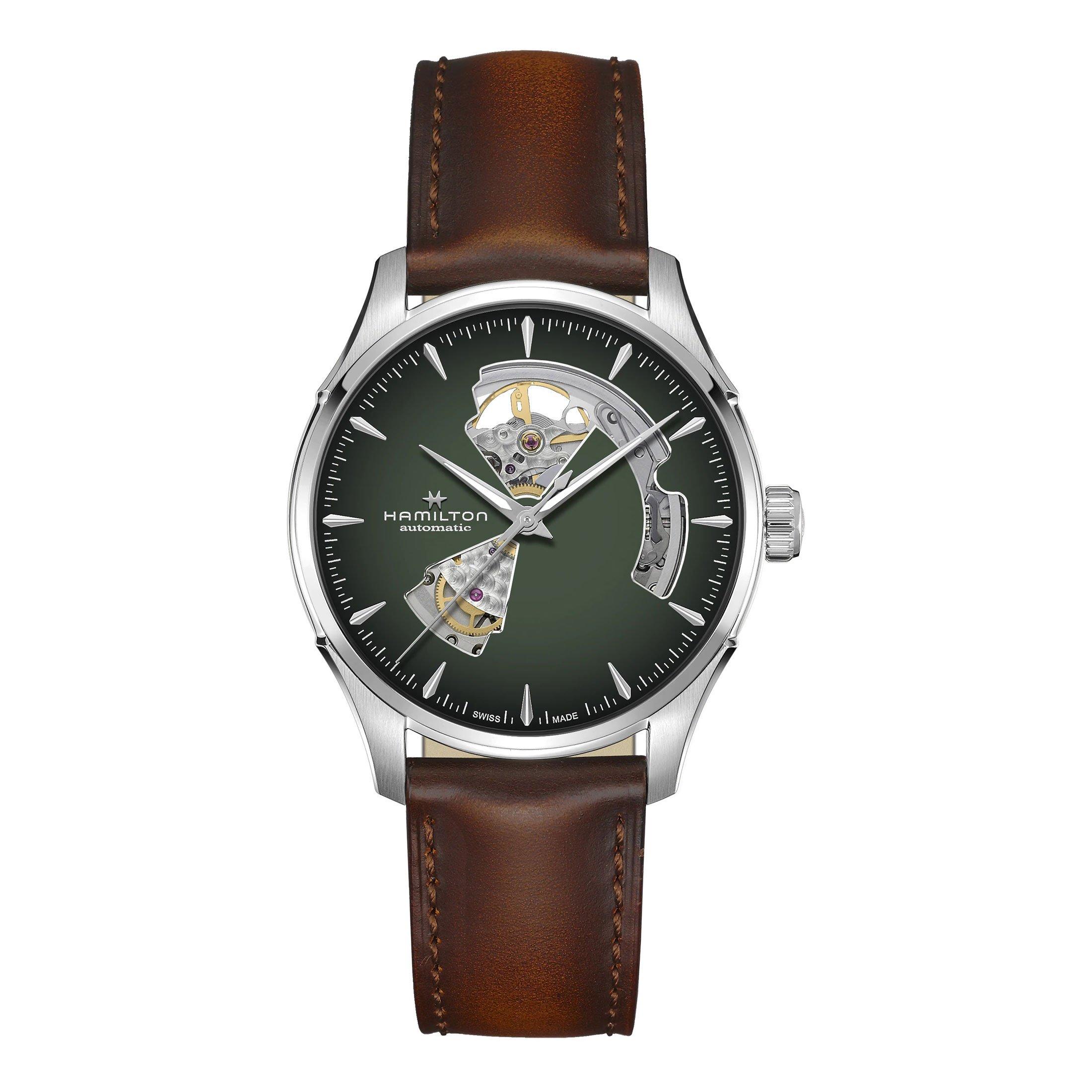 Showcasing an incredible display of timepiece craftsmanship, this captivating Hamilton Jazzmaster Open Heart Automatic Watch boasts a unique smoked green dial and exquisite attention to detail giving you a luxury statement for every occasion.