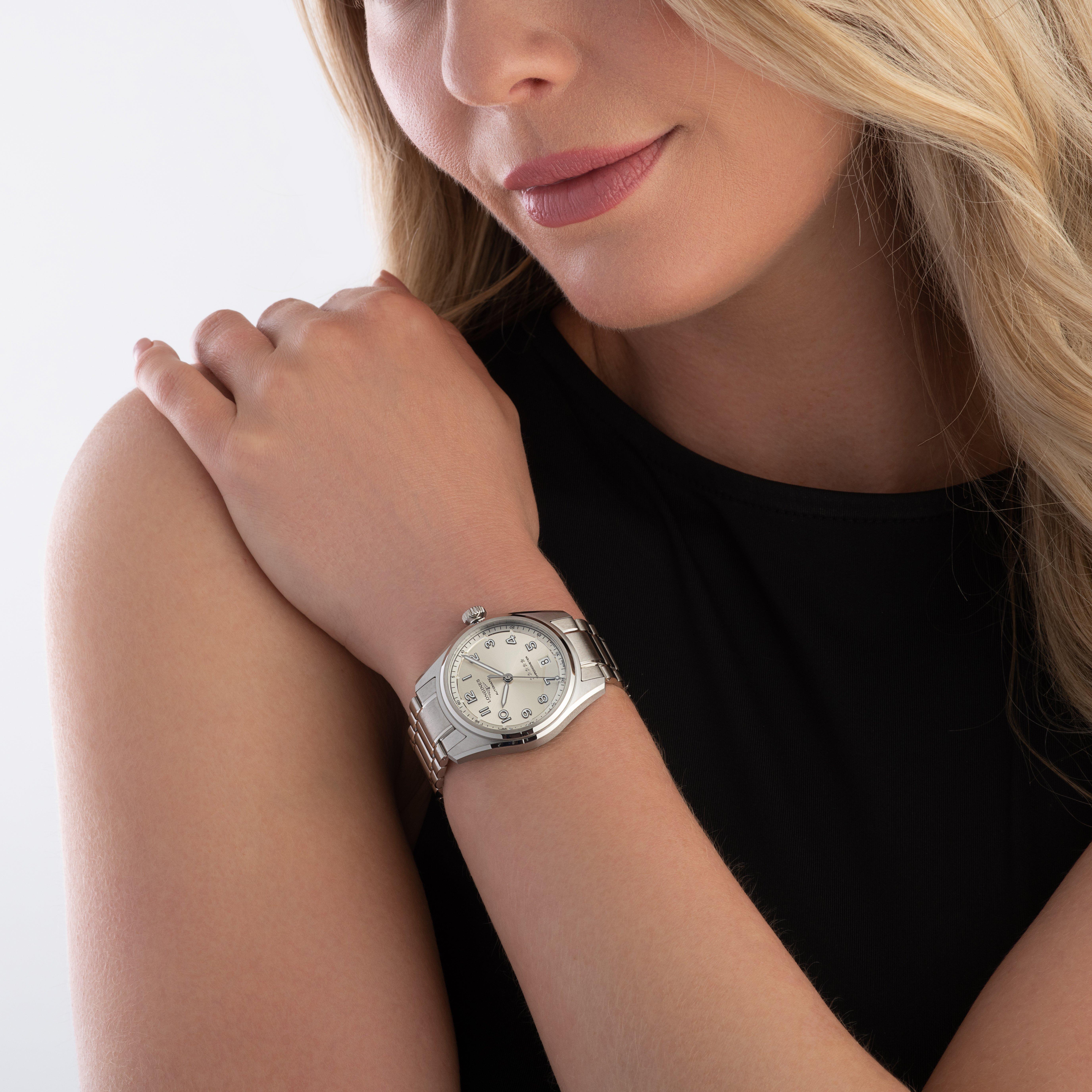 - Presented on a stainless steel bracelet fastened with triple safety folding clasp and push-piece opening mechanism
