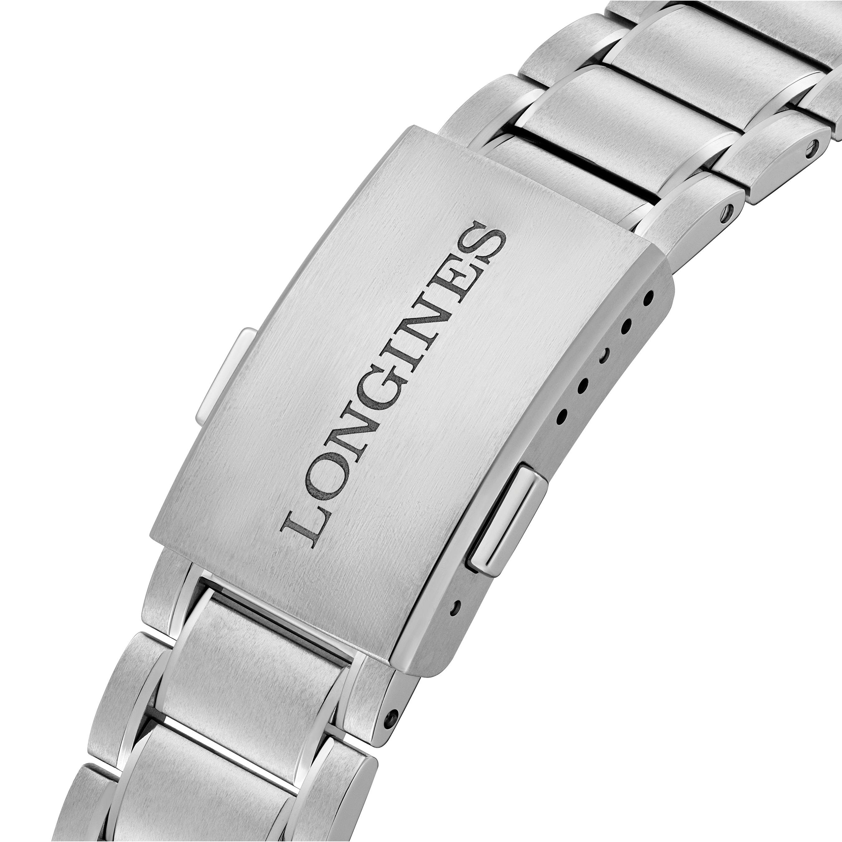 - Presented on a stainless steel strap fastened with a double safety folding clasp and push-piece opening mechanism