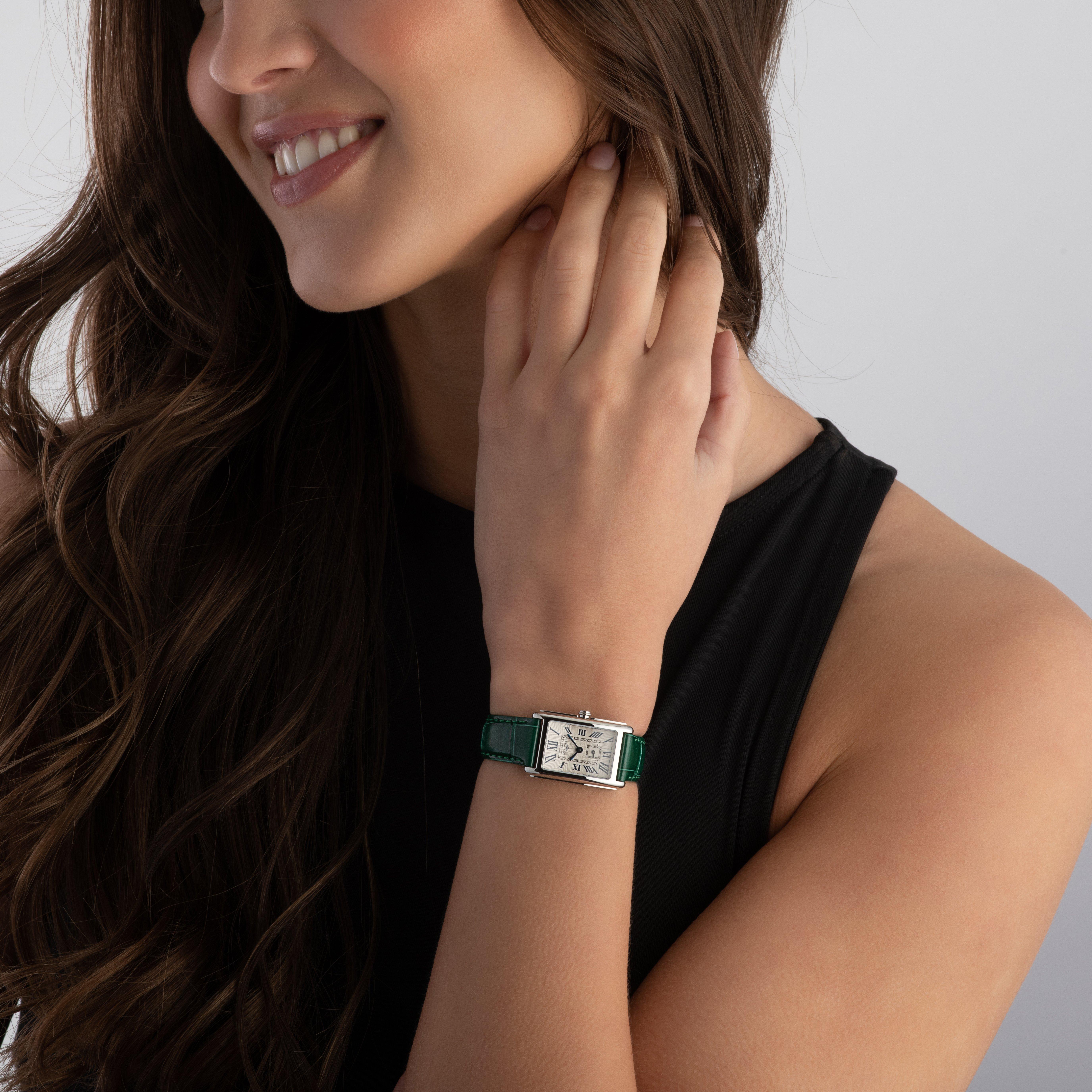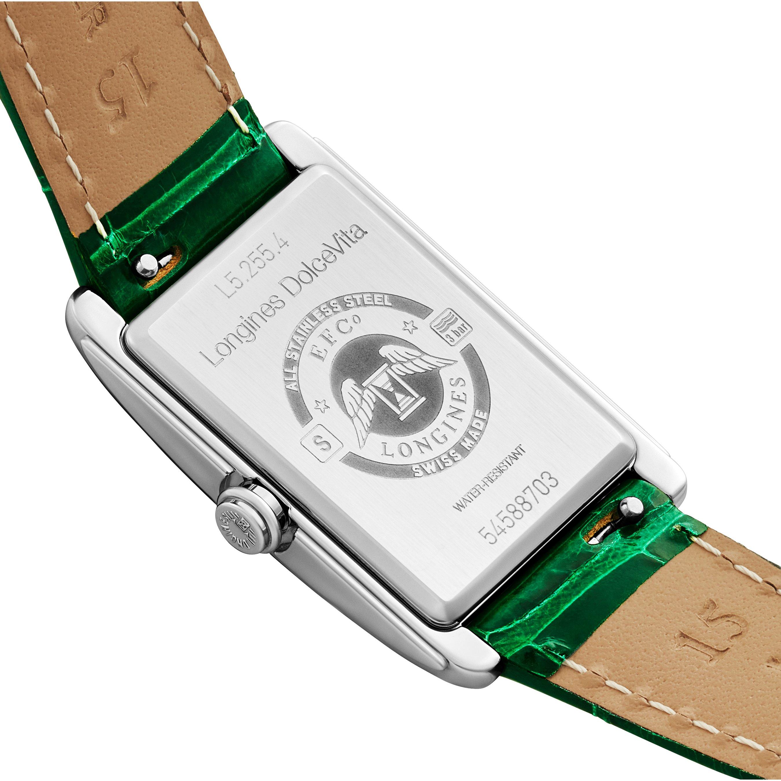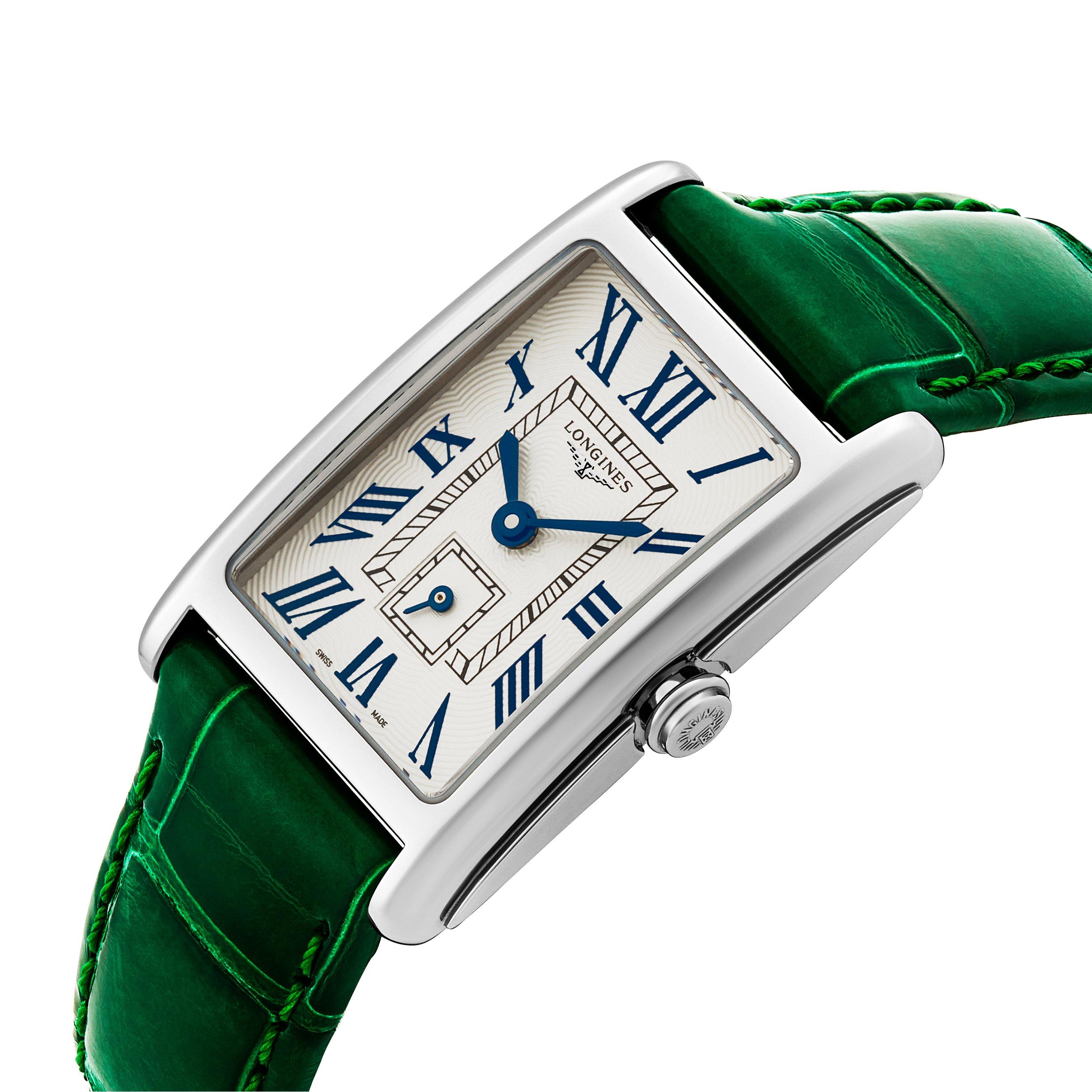 The Italian way of life enhanced by a timeless elegance, this Longines DolceVita 32mm Ladies Watch boasts a vibrant green strap for contemporary style.