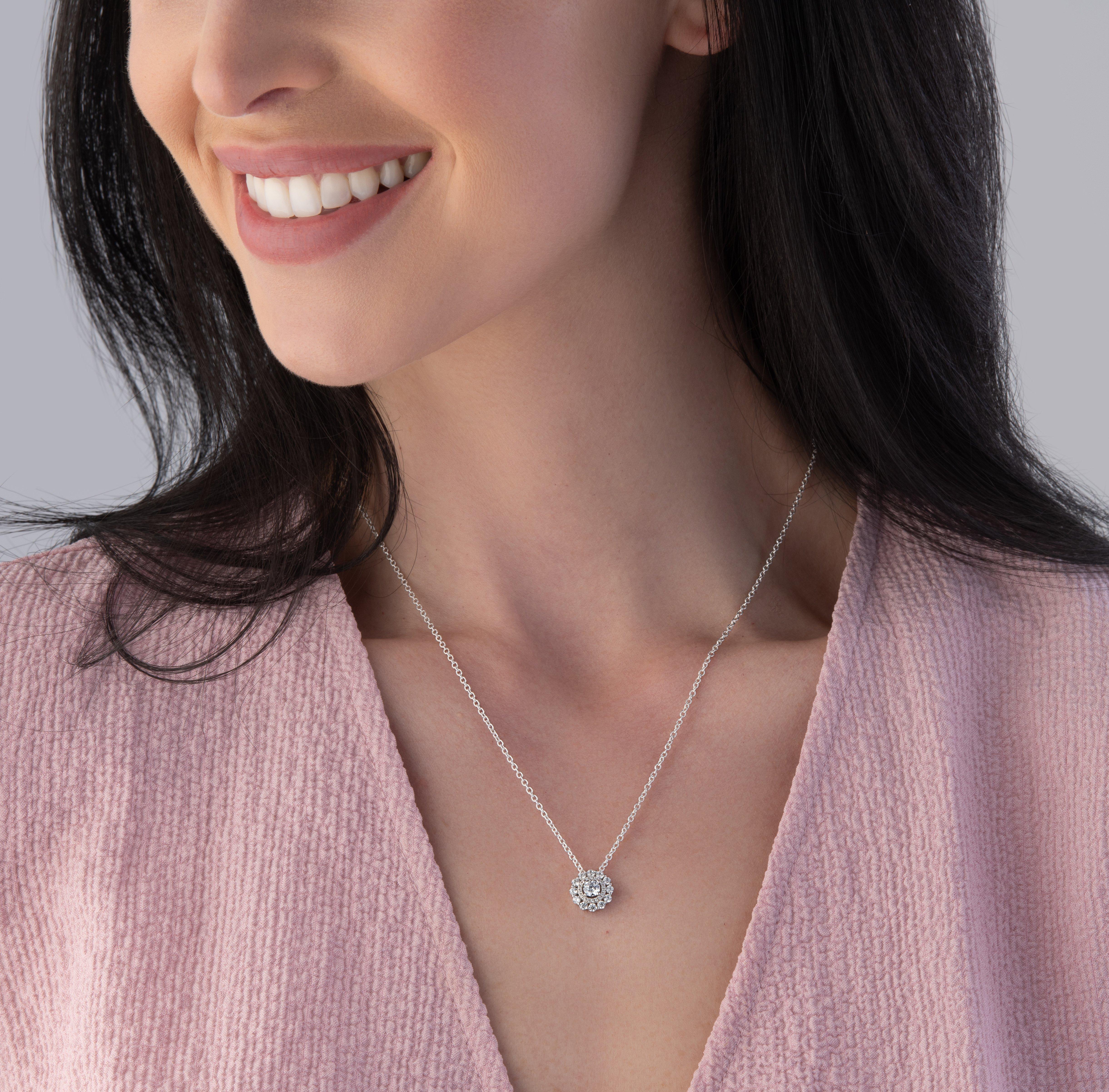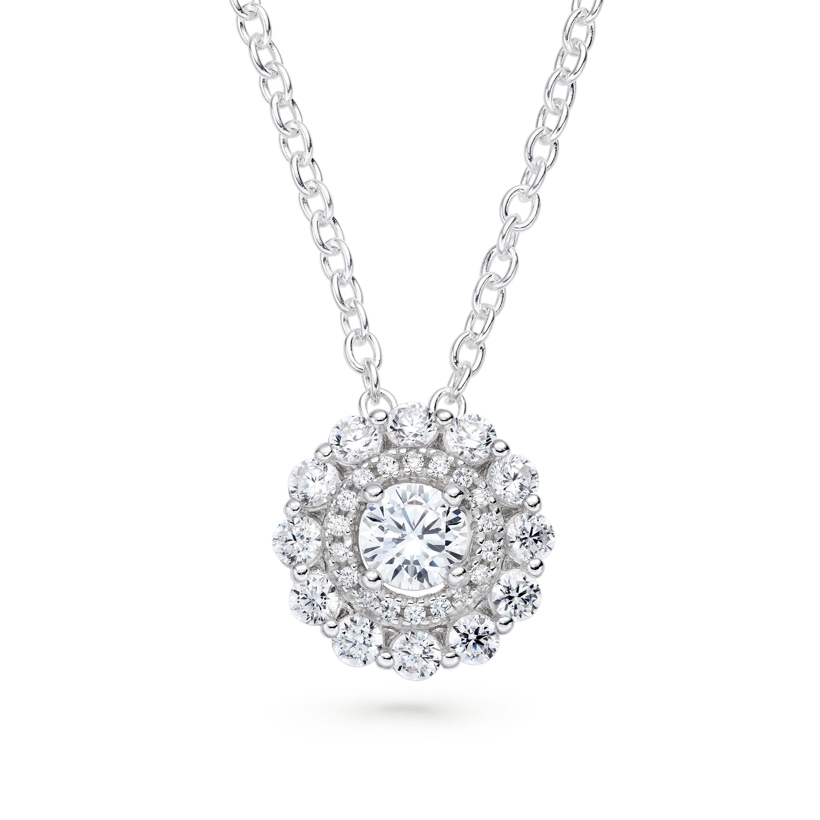 Sparkle all day everyday with this Silver Cubic Zirconia Double Halo Pendant, the perfect pendant for elevating your casual style. Pair with some sparkling earrings for the ultimate glamour.