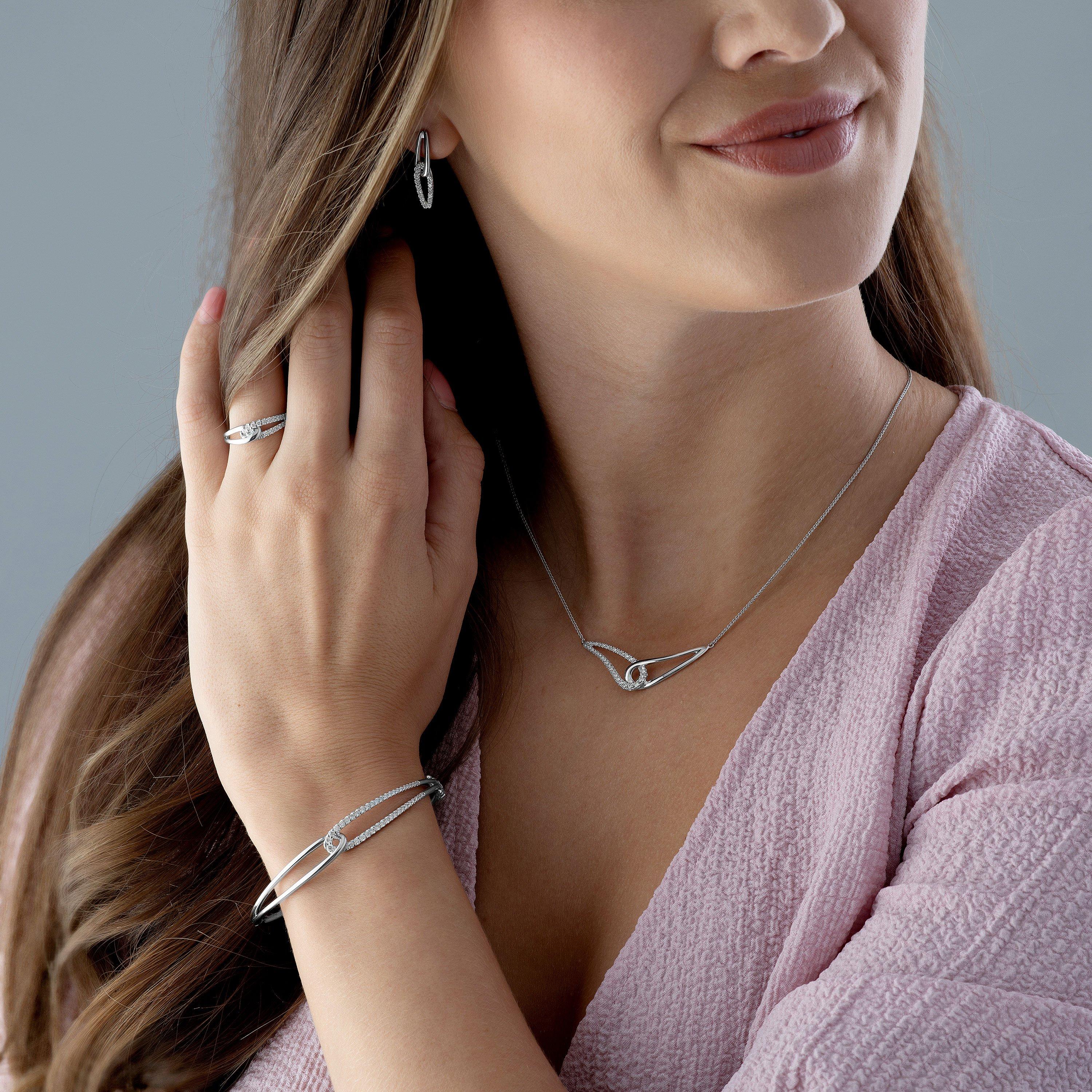 Showcasing exquisite design with a sparkle to be admired for years to come, this Essence 9ct White Gold Diamond Bangle is secured with a tongue and safety clasp and beautifully reflects an everlasting bond combined with sentimental meaning. Please note there may be a 5% variance on the diamond carat weight, as every diamond is unique.