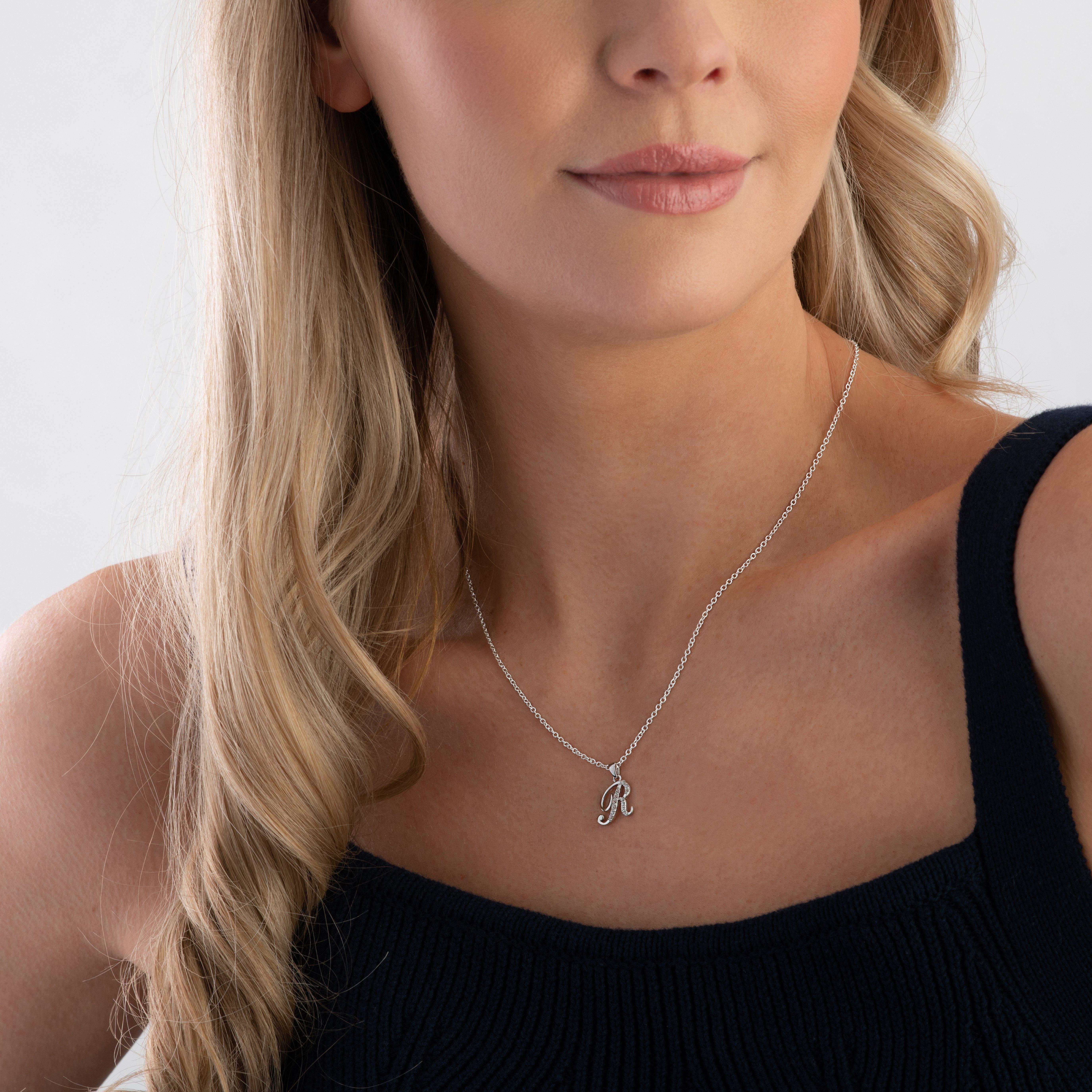 Silver Cubic Zirconia Initial R Pendant