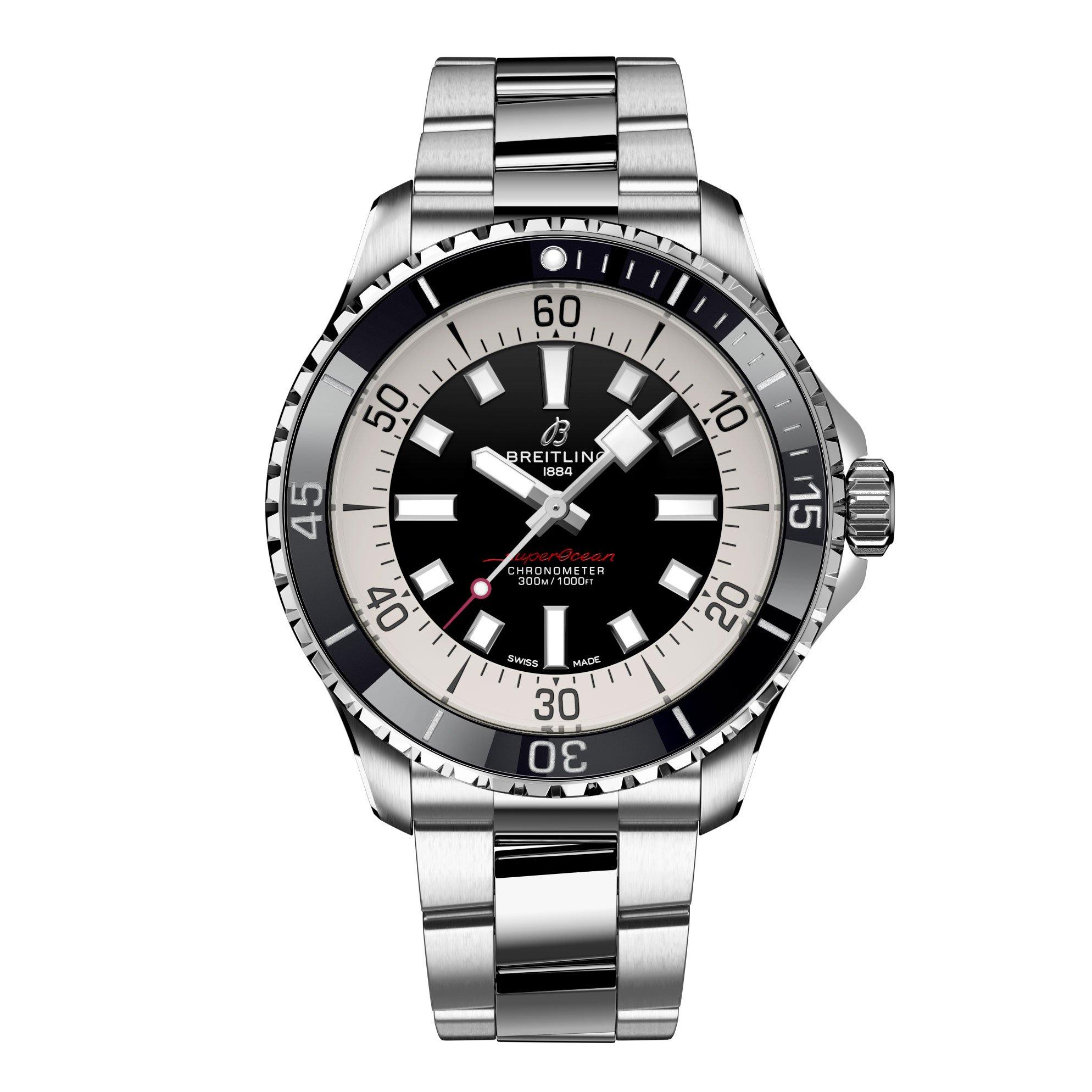 The definition of a classic diver’s watch, this Breitling Superocean Automatic 44mm Men’s Watch showcases a striking black and white design along with instantly recognisable features. Designed with all your diving needs in mind, this timepiece obtains exceptional functionality.