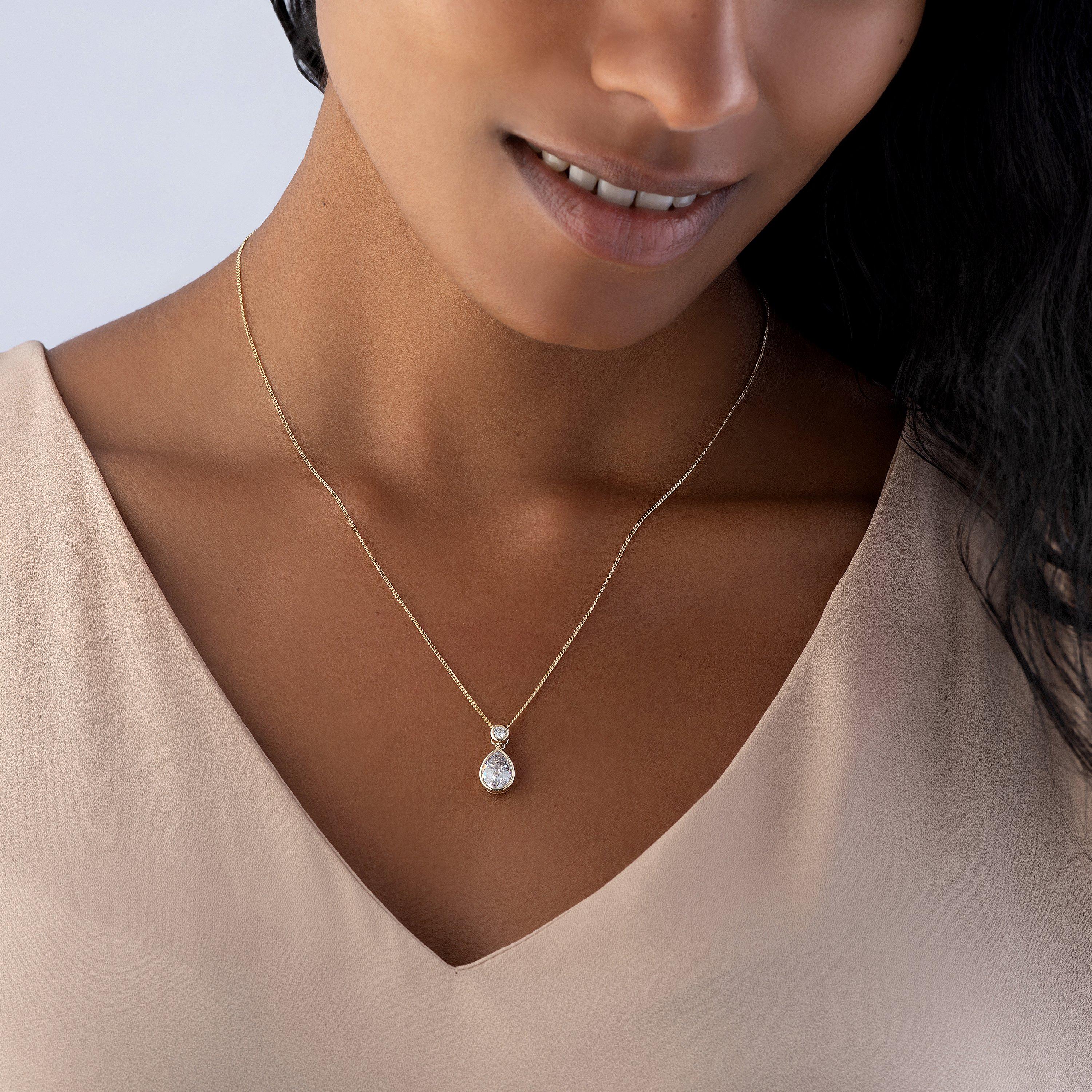 Let your glamourous sense of style shine with this beautiful 9ct Yellow Gold Cubic Zirconia Pear Pendant. A sparkling pear cut cubic zirconia crystal takes centre stage amongst 9ct yellow gold, giving you an elegant look for every occasion.