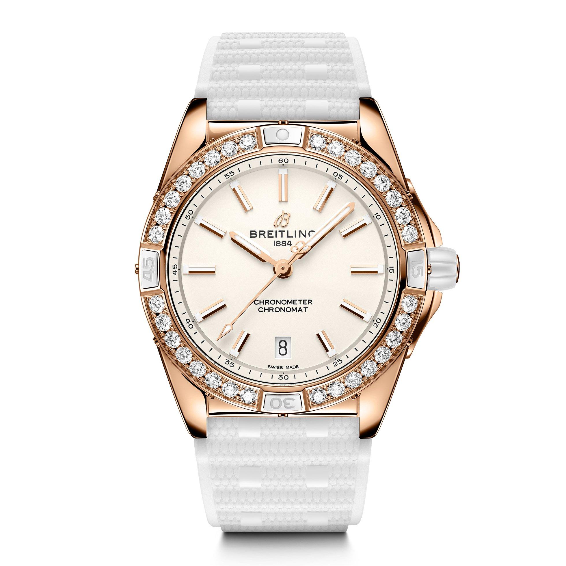 Complete all of your looks with a timepiece that is bound to make an impact. This Breitling Super Chronomat Automatic 38mm 18ct Rose Gold Ladies Watch puts a striking twist on the Chronomat range, giving you luxury as well as meticulous performance.
