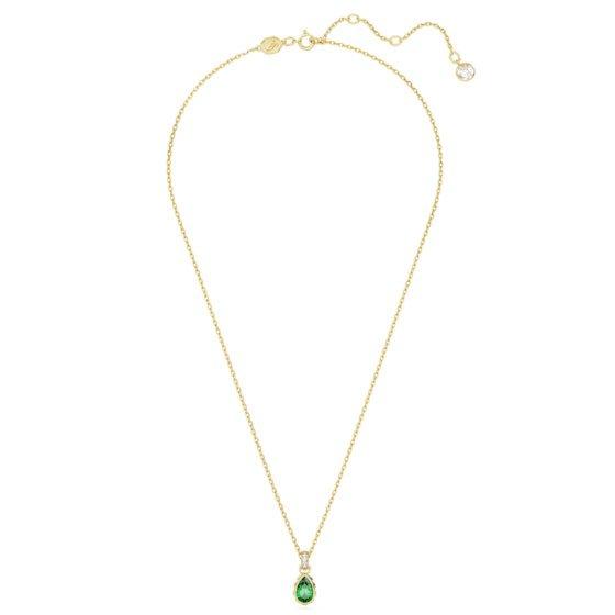 Radiating glamour and luxury, this Swarovski Chroma Yellow Gold Tone Crystal Necklace will add a touch of sophisticated sparkle to every look. Showcasing a luxurious green pear-cut Swarovski crystal enhanced with clear crystals radiating elegance and charm.