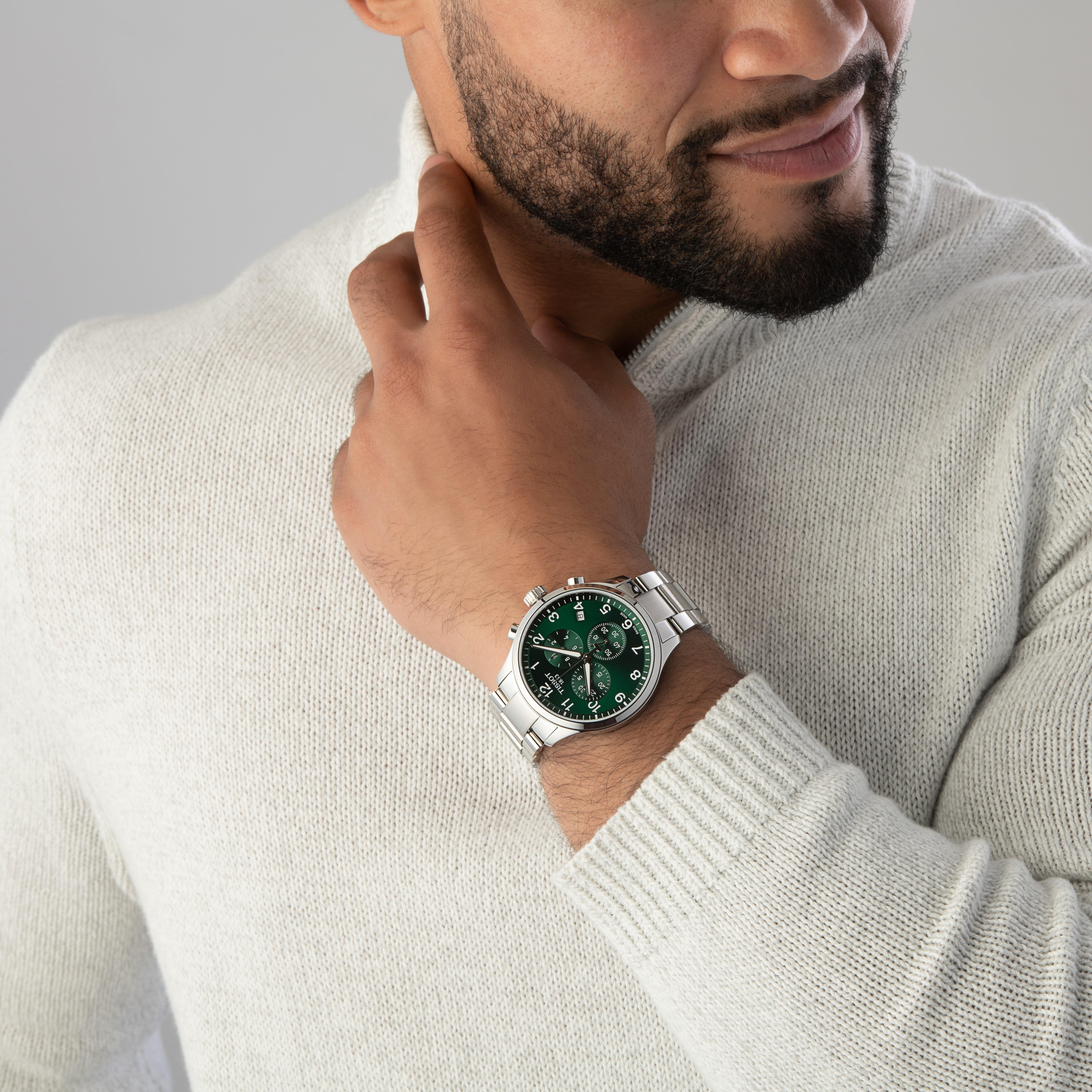 Introduce a pop of sophisticated colour to your timepiece collection with this Tissot Chrono XL Classic 45mm Men's Watch. Designed in stainless steel, sporting an alluring green dial, this stand out timepiece reveals an interesting personality.
