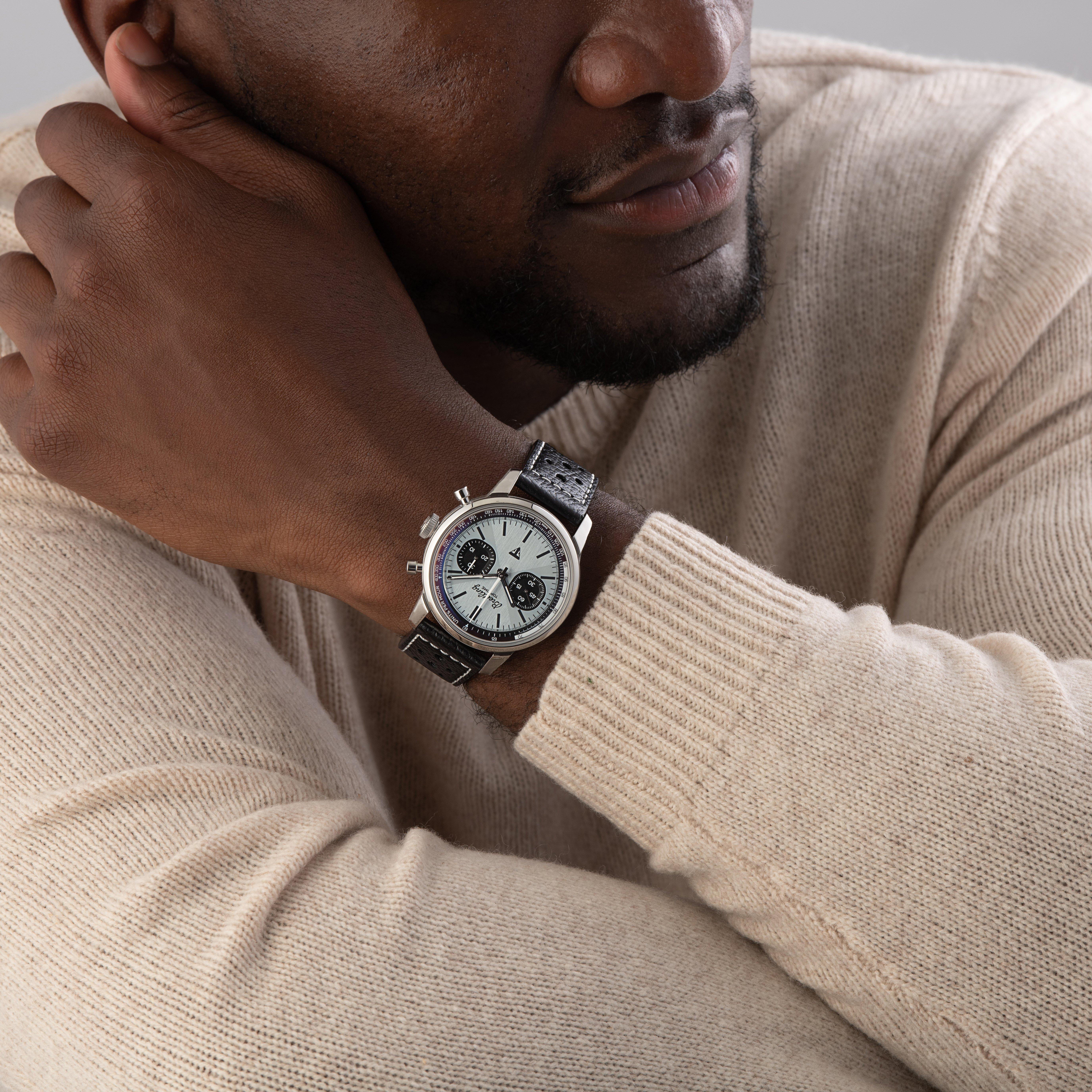 - Contrasting chronograph faces