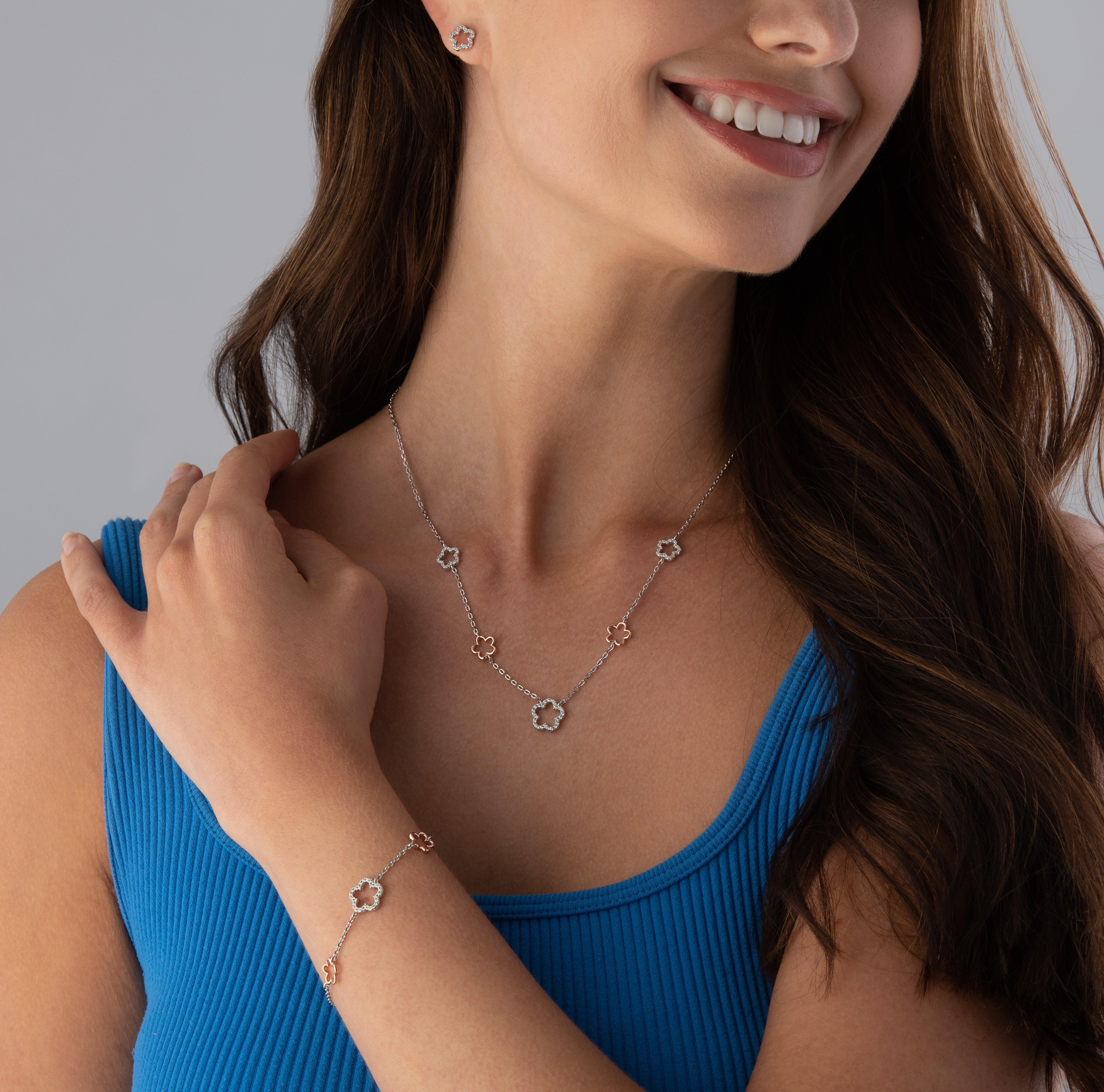 Silver and Rose Gold Plated Cubic Zirconia Flower Necklace