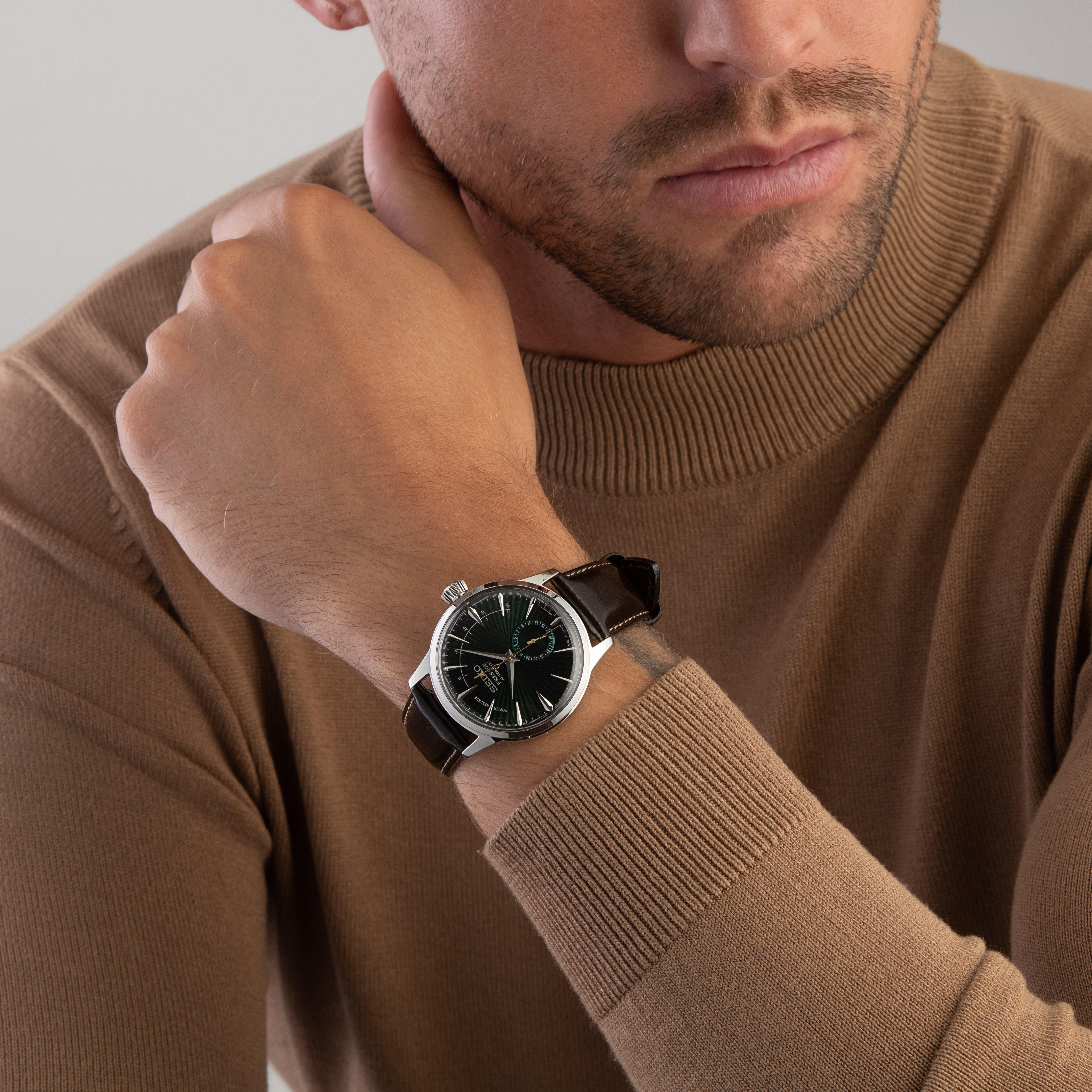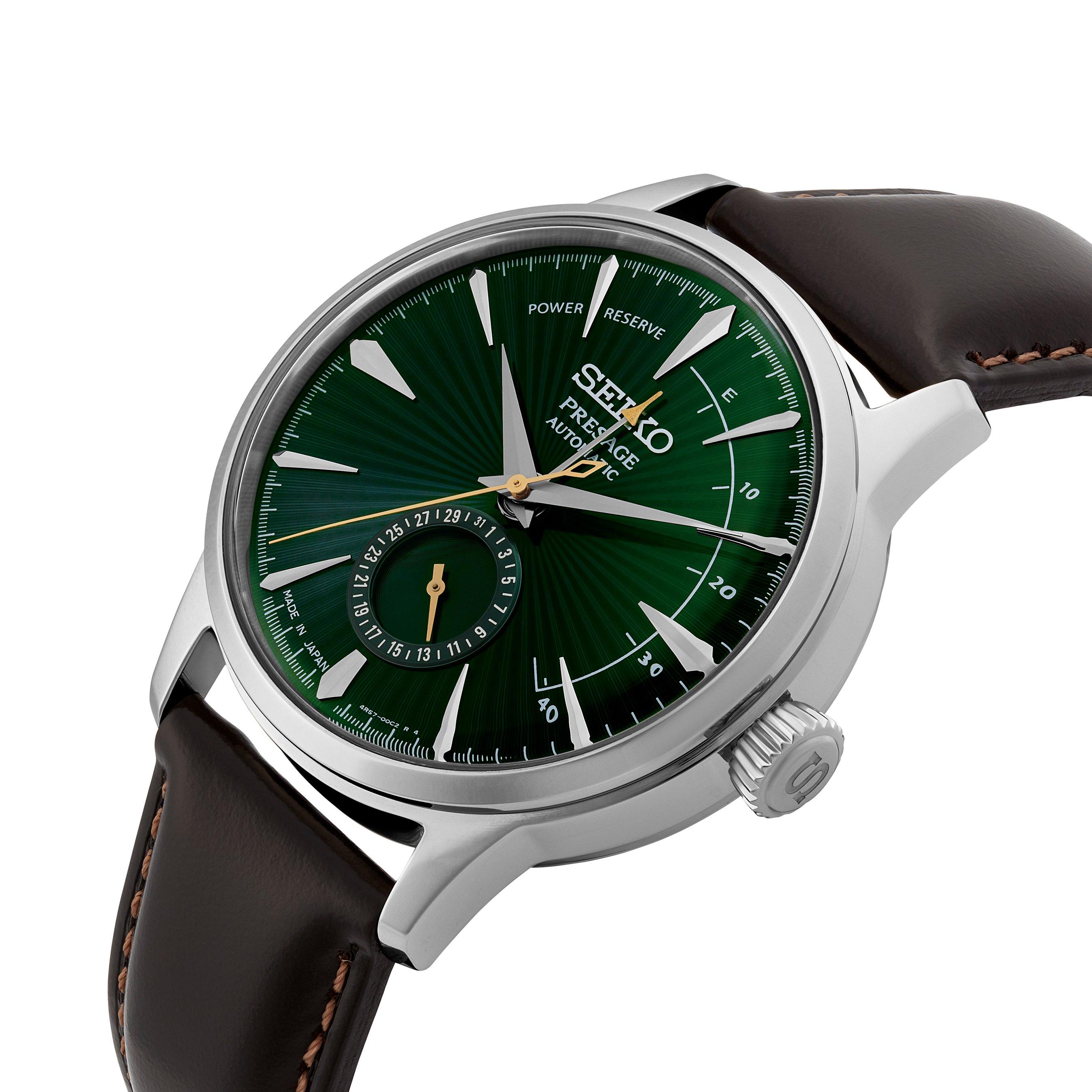 Featuring one of the most popular colours within the Presage Cocktail Time series, this Presage Cocktail Time 'Midnight Mockingbird' 40.5mm Automatic Men’s Watch embodies the famous drink from the Star Bar in Tokyo’s sophisticated Ginza area. Designed in reflection of the Green Mockingbird cocktail, this timepiece combines sophisticated details with a distinctly Japanese aesthetic.