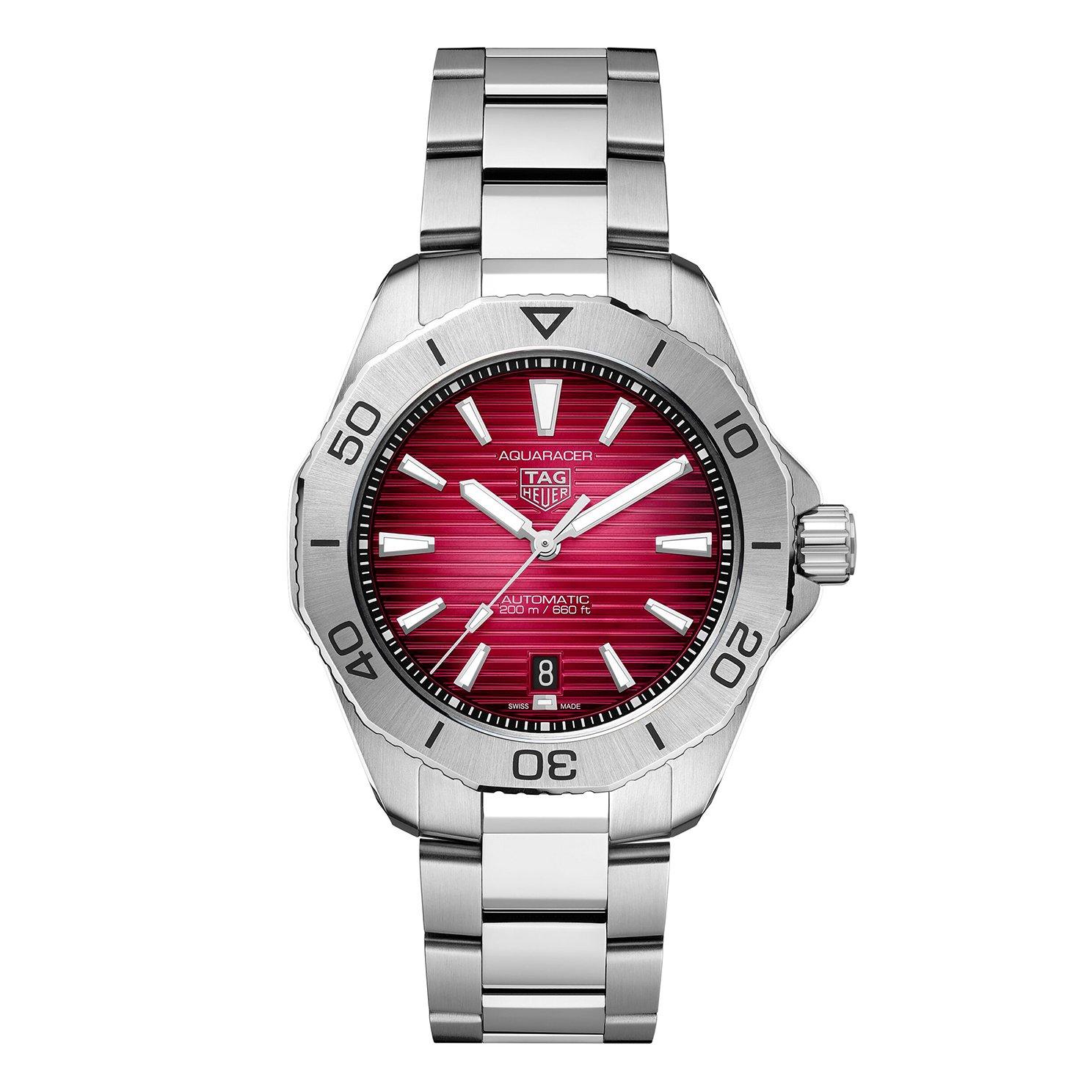 Designed to be versatile, this TAG Heuer Aquaracer Professional 200 Calibre 5 40mm Automatic Watch sports an intensely red dial, radiating a confidence you’ll want to show off. Paired with a stainless steel bracelet and equipped with the Calibre 5 automatic movement, this timepiece will accompany you anywhere, even up to 200m under water.
