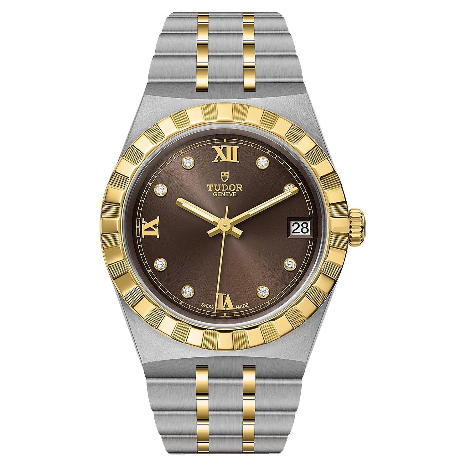 Boasting a powerful design, this TUDOR Royal 34mm Diamond Automatic Watch showcases a chocolate brown dial enhanced with gold and diamond detailing. Expertly crafted to reflect superior quality the brand is known for, this incredible timepiece ensures high-performance and a refined aesthetic.