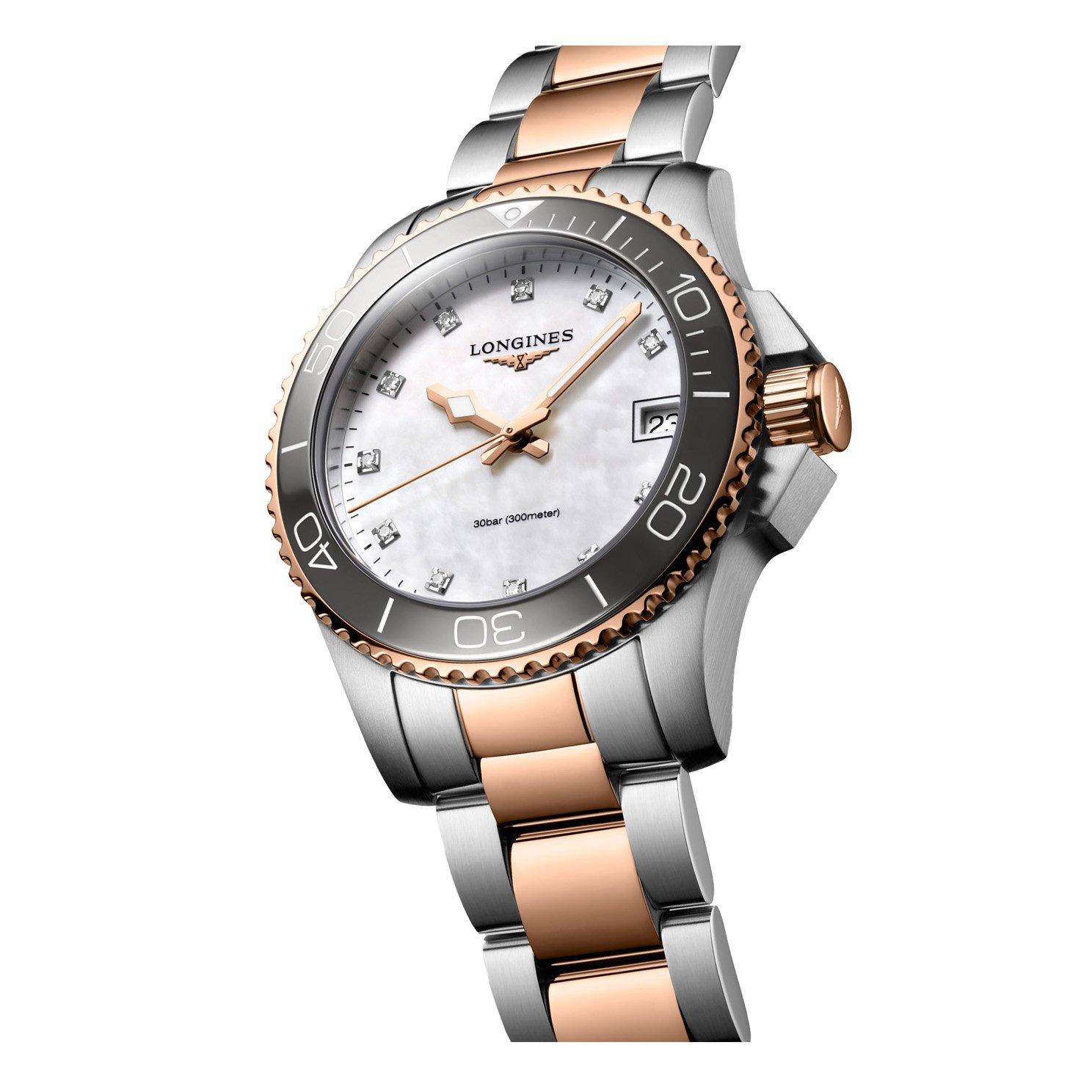Longines HydroConquest 32mm Stainless Steel and Rose Gold PVD Diamond Ladies Watch