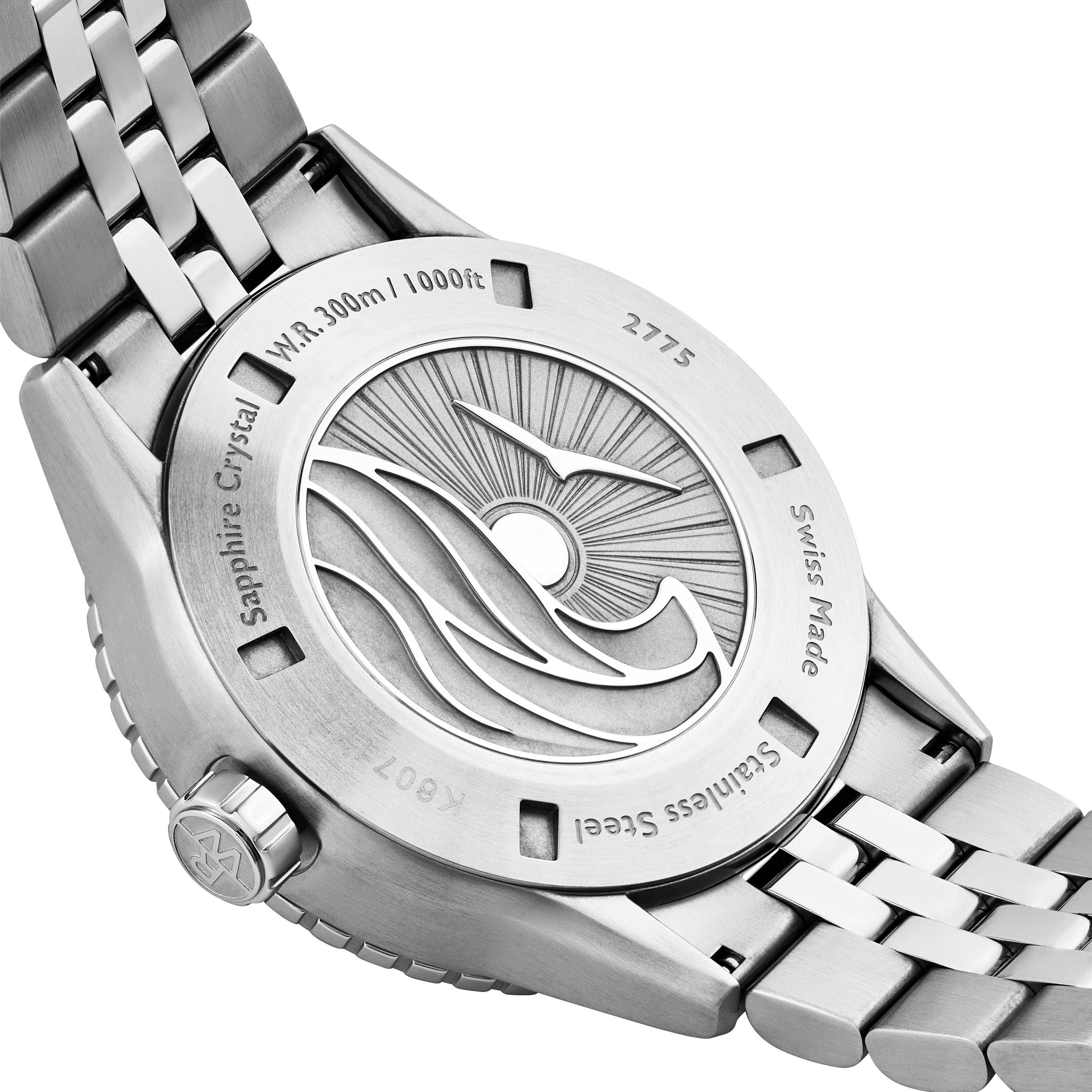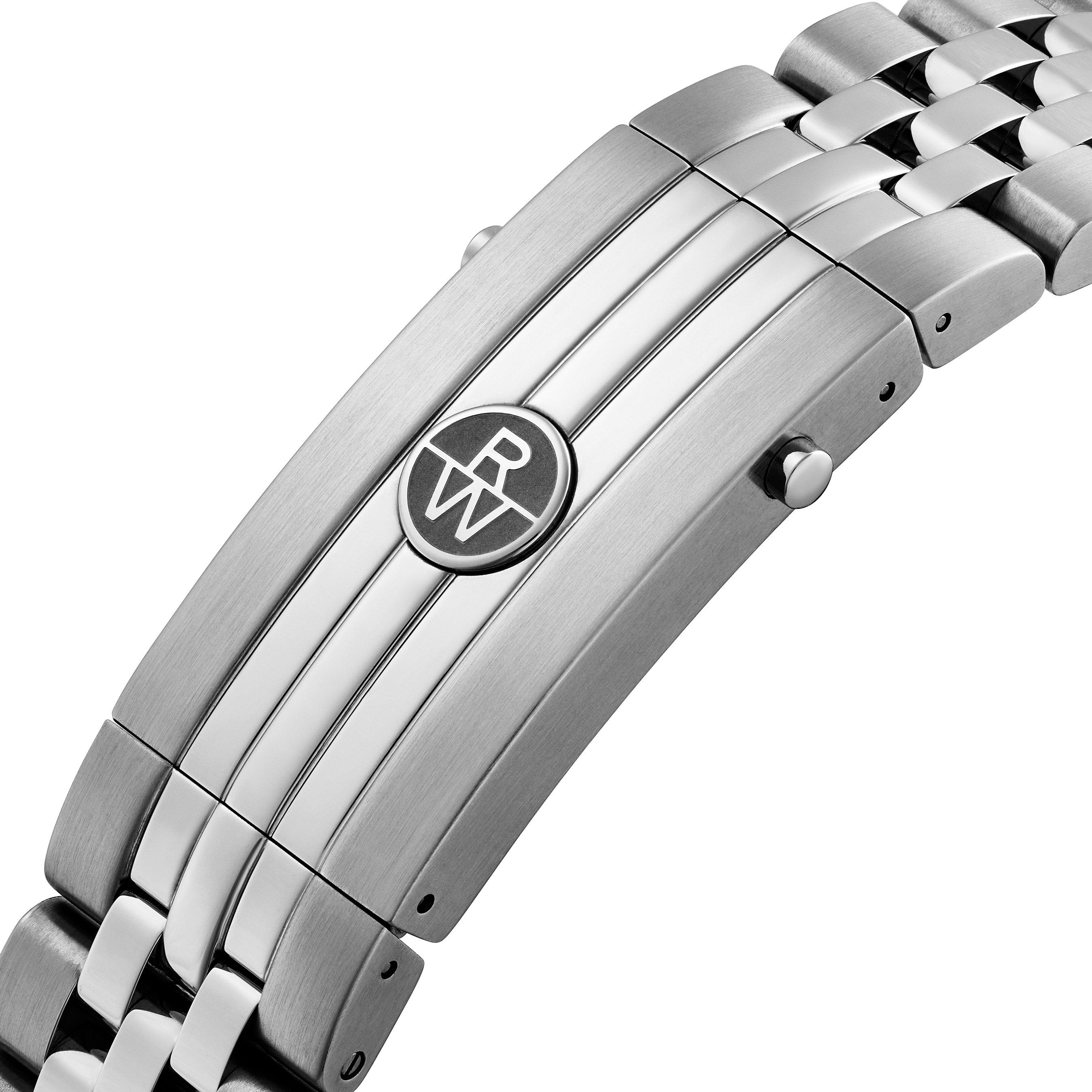- Presented on a stainless steel bracelet and finished with a foldover clasp