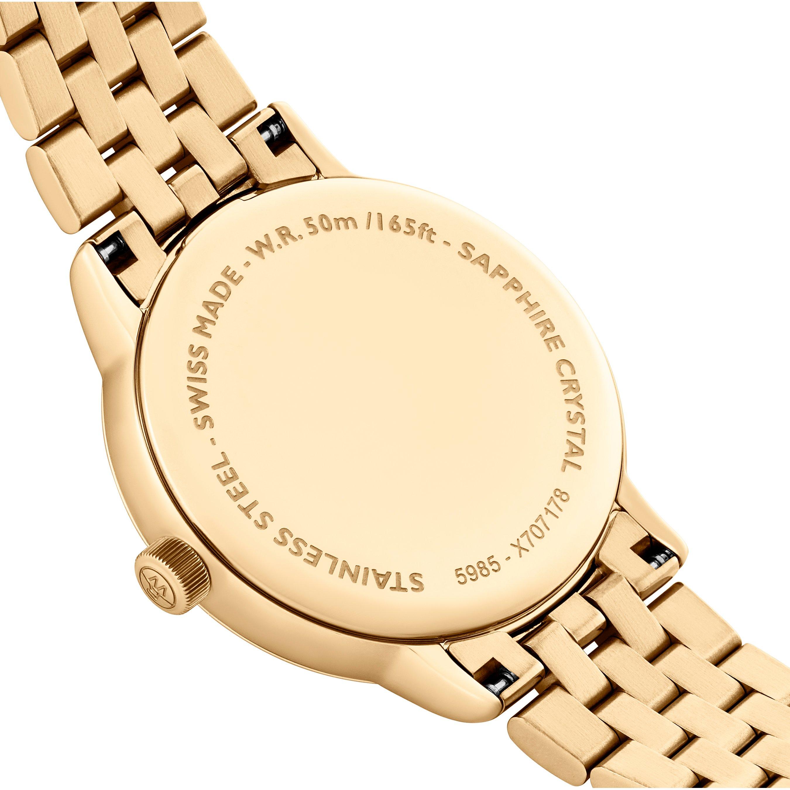 - Presented on a gold tone stainless steel bracelet and finished with a foldover clasp